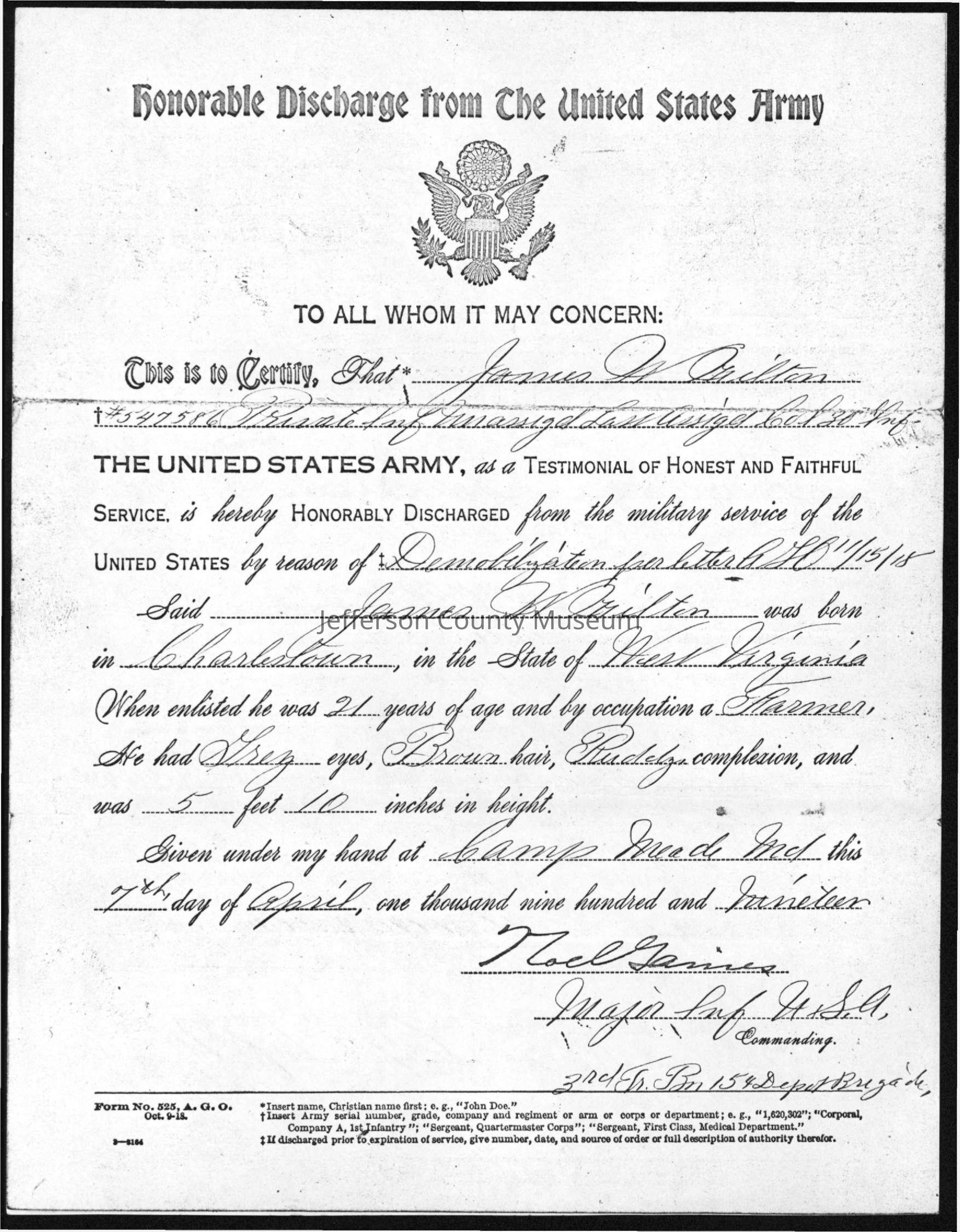 Appraisal: To be held permanently in the Jefferson County Museum.