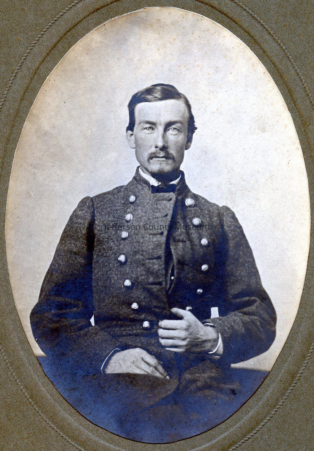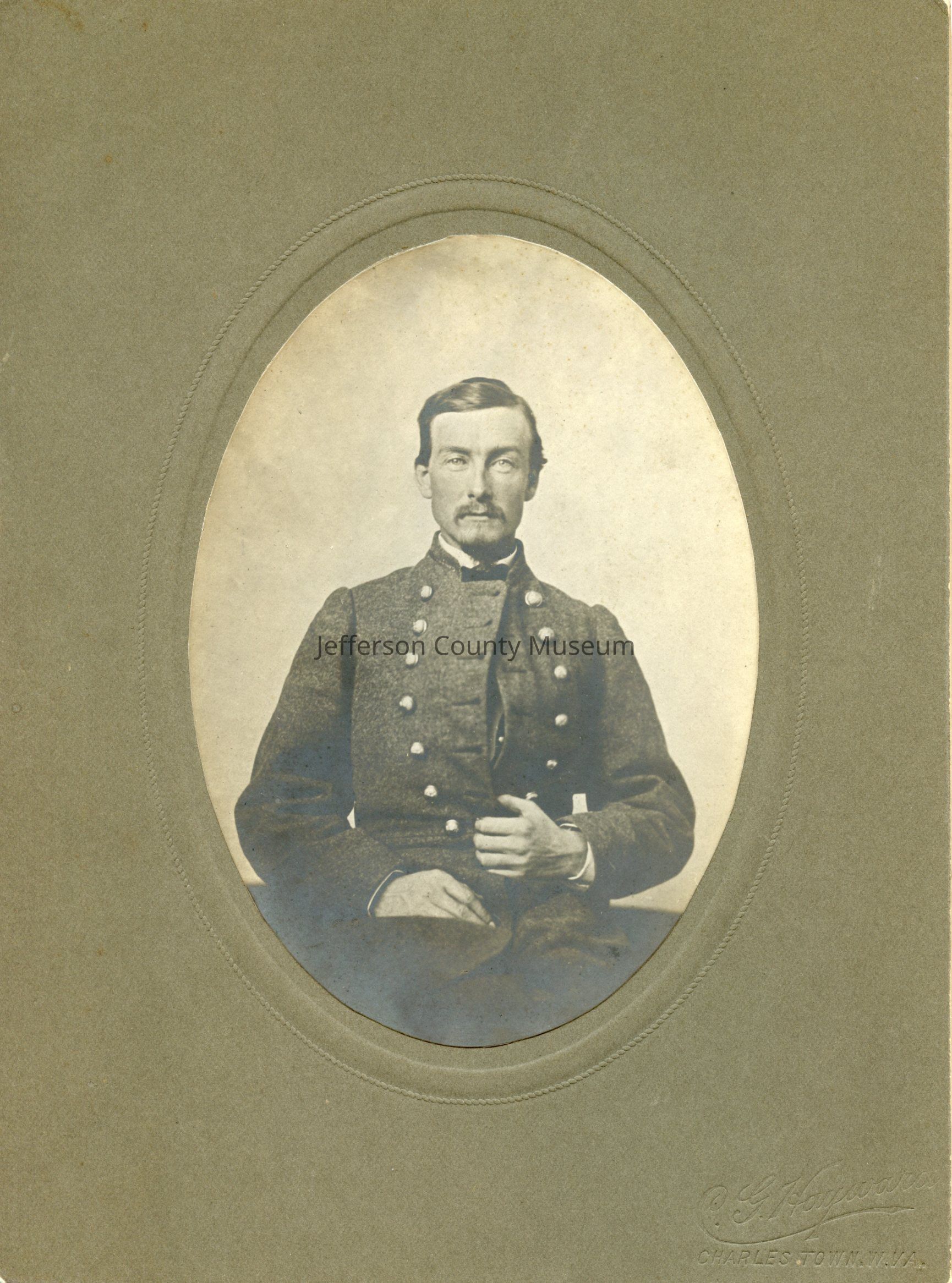Bushrod Corbin Washington in Civil War lieutenant's uniform. Frontal pose, seated. He has moustache and Vandyke beard. Jacket open, hands visible, bare headed. Glued to heavy card stock.Acquisition
