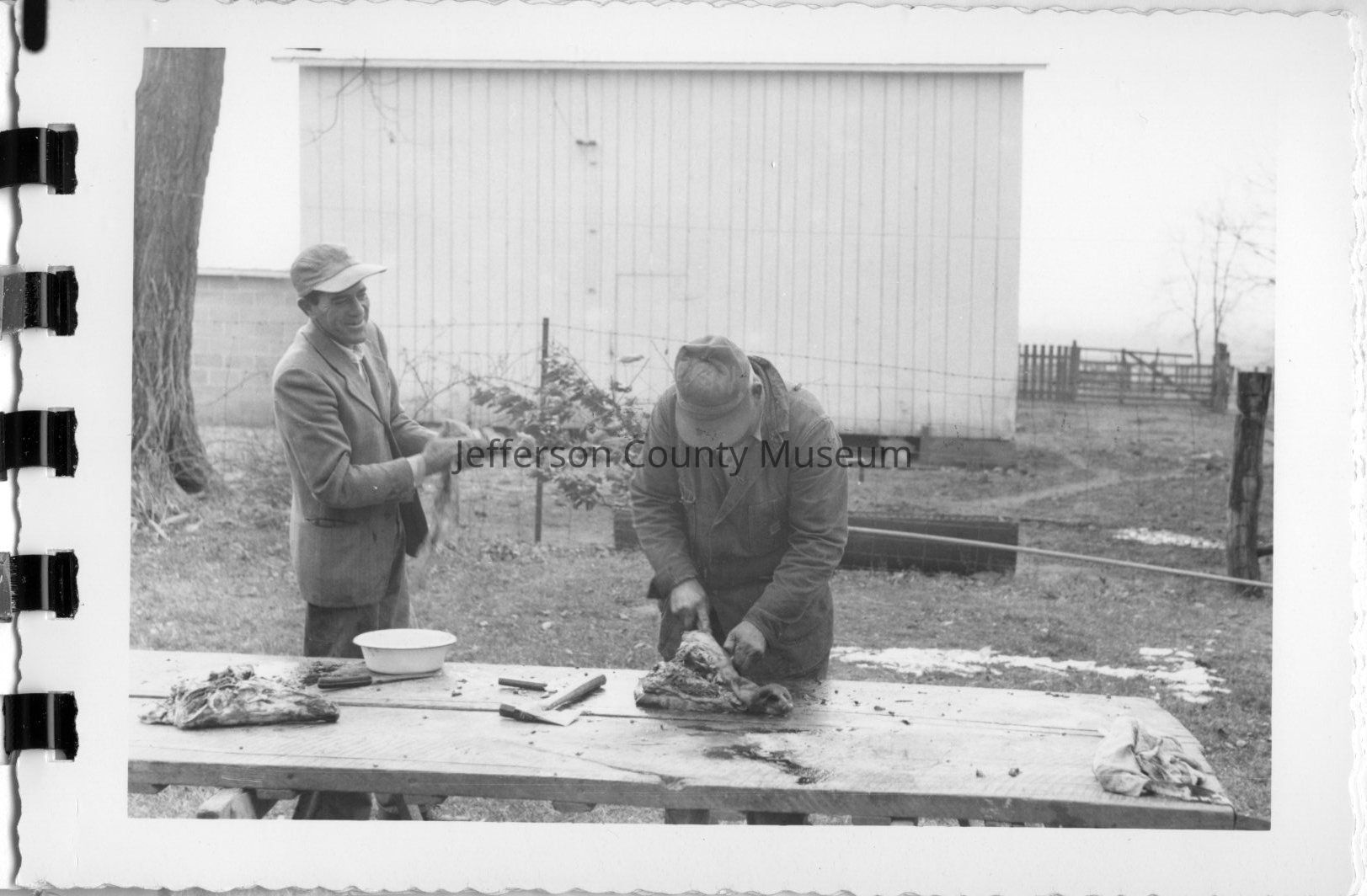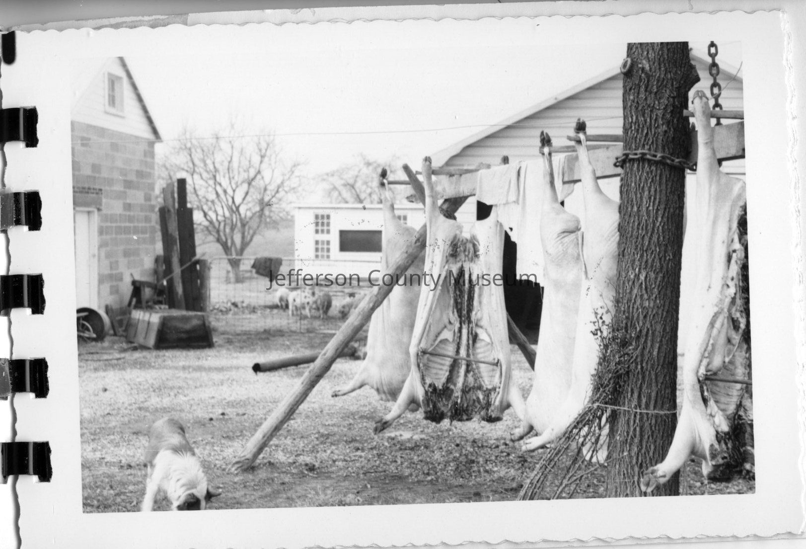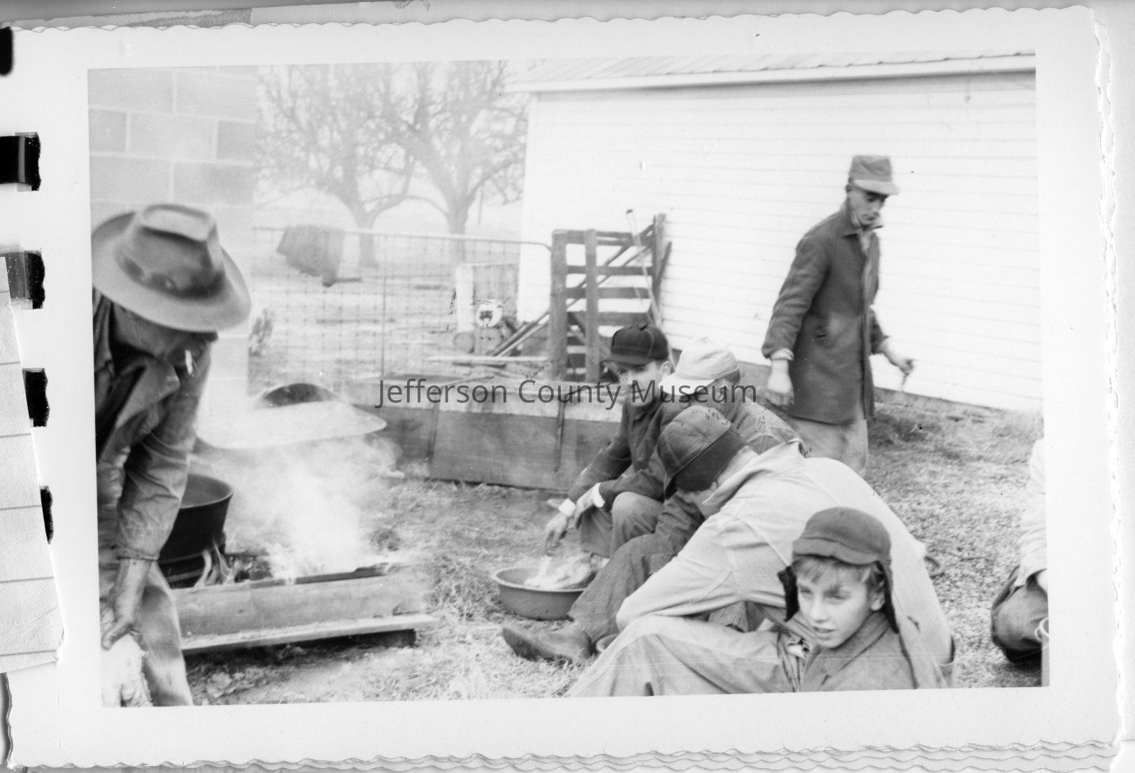 Fall and Thanksgiving, 1951 - booklet of 8 photos: 2 photos of WVU Homecoming, 6 photos of butchering at M.L.M.S.'s parents' farm