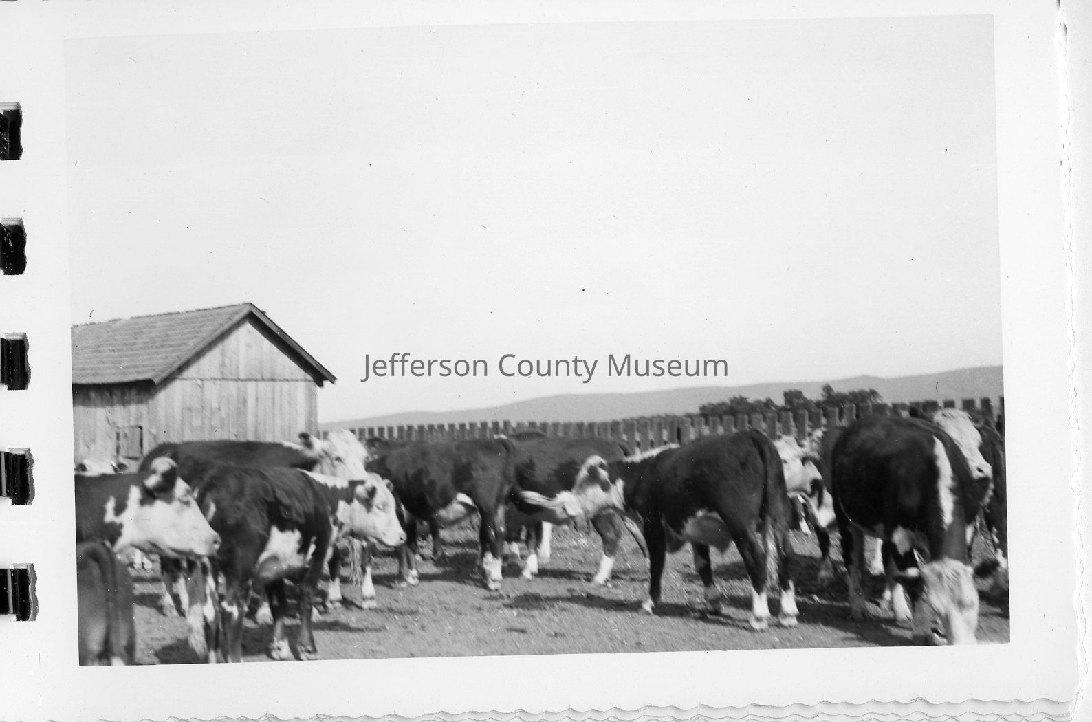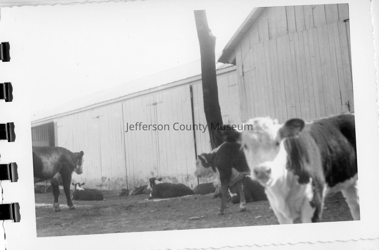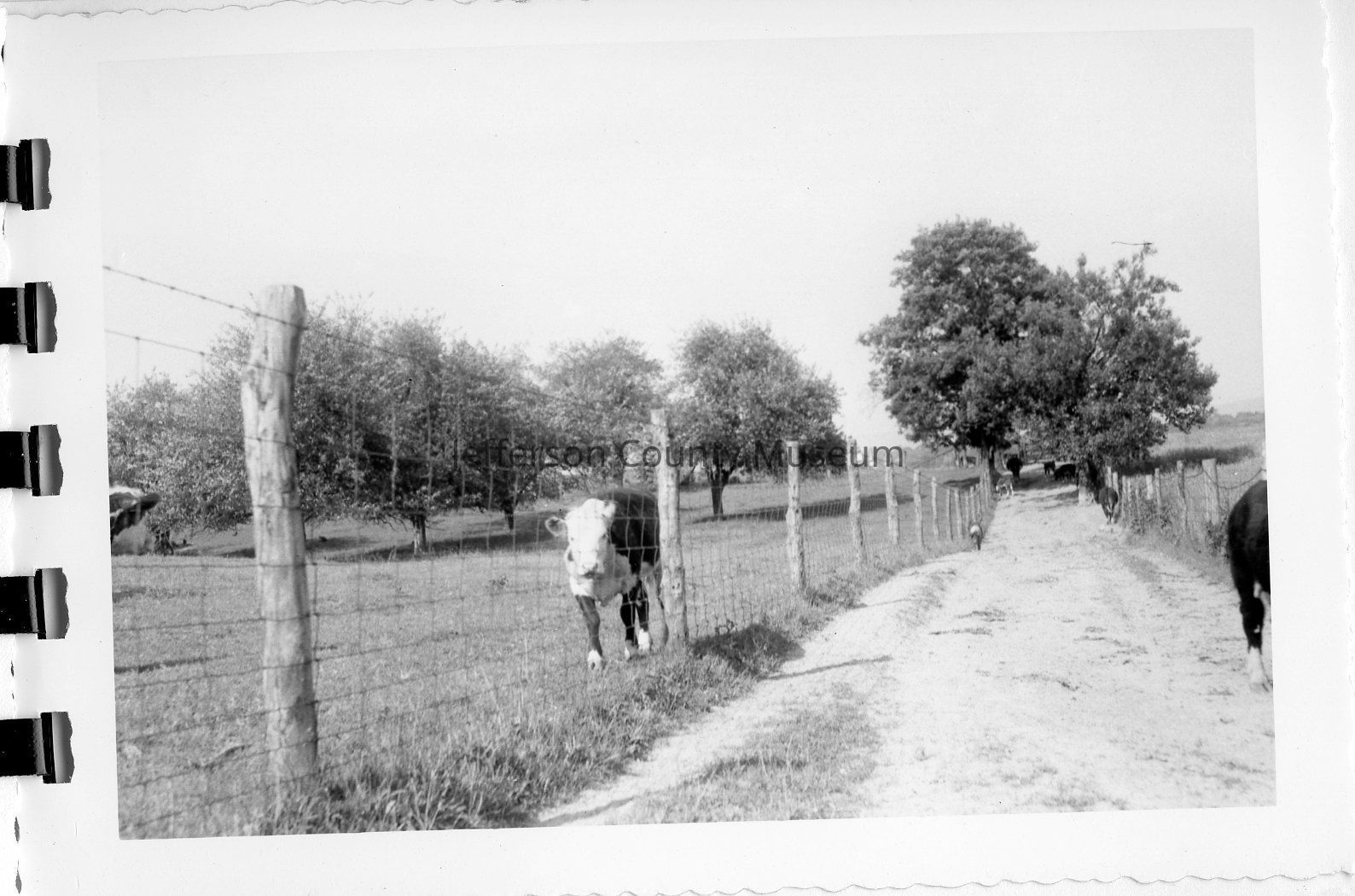 booklet of 8 black & white photos of purebred Hereford cows at Calarama Farm in 1952. James William Milton is in 3 of the photos and Carlotta Dice Gruber Milton is in 2 of the photos.