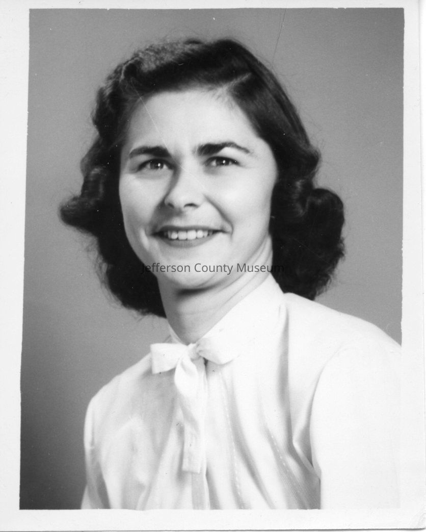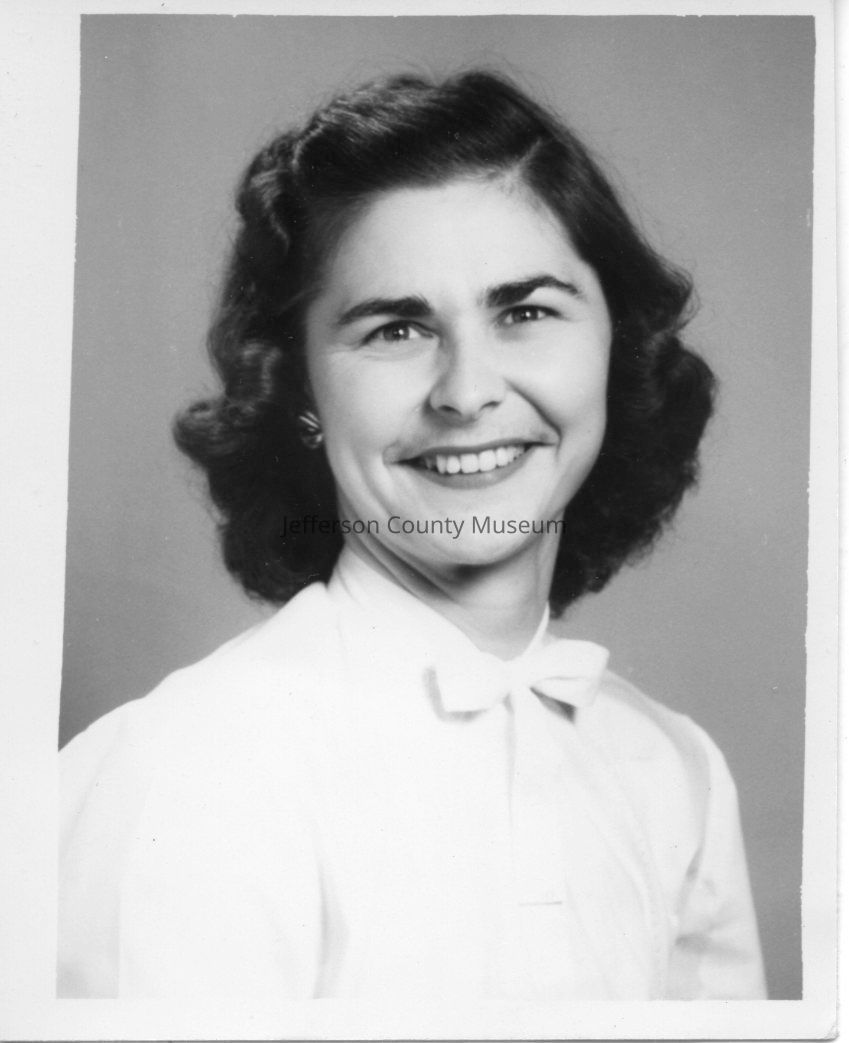 4 photos of M.L.M.S. wearing white blouse with tie at throat, "1959" penciled on reverse of oneAcquisition
