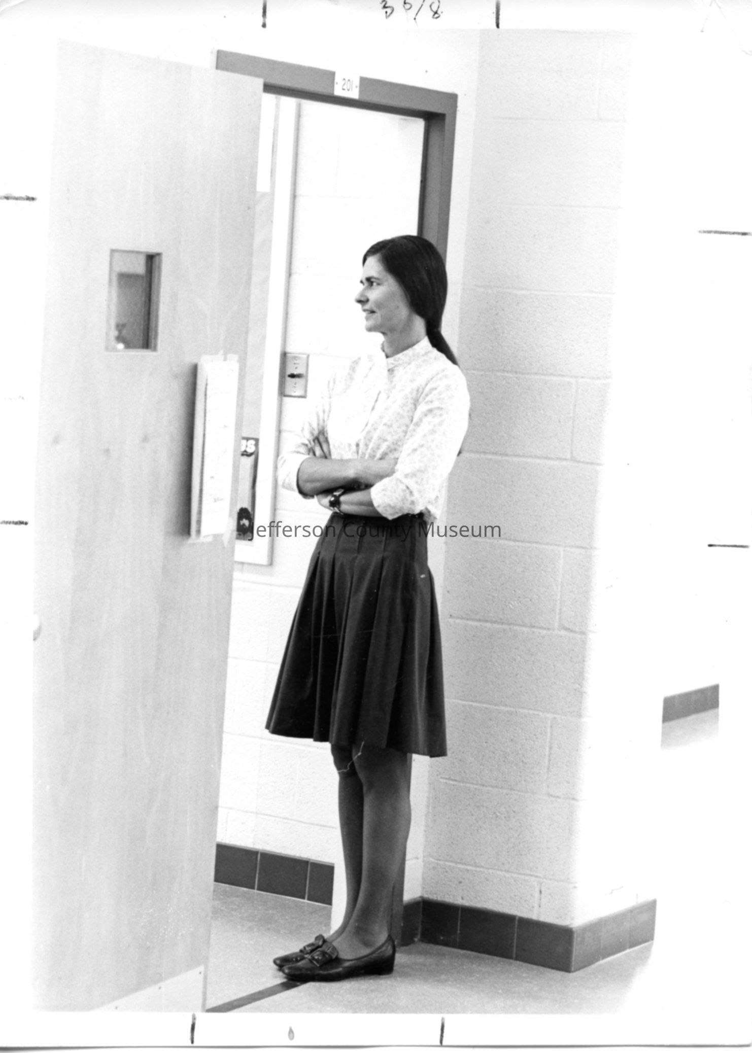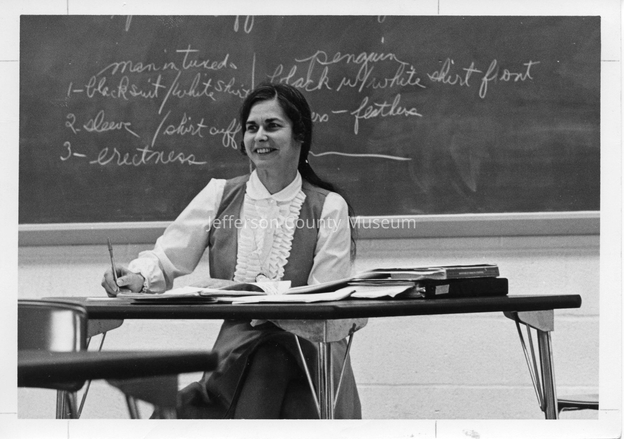 Fall, 1972 photo of M.L.M.S., sitting at desk, Wootton High School (Rockville, MD)