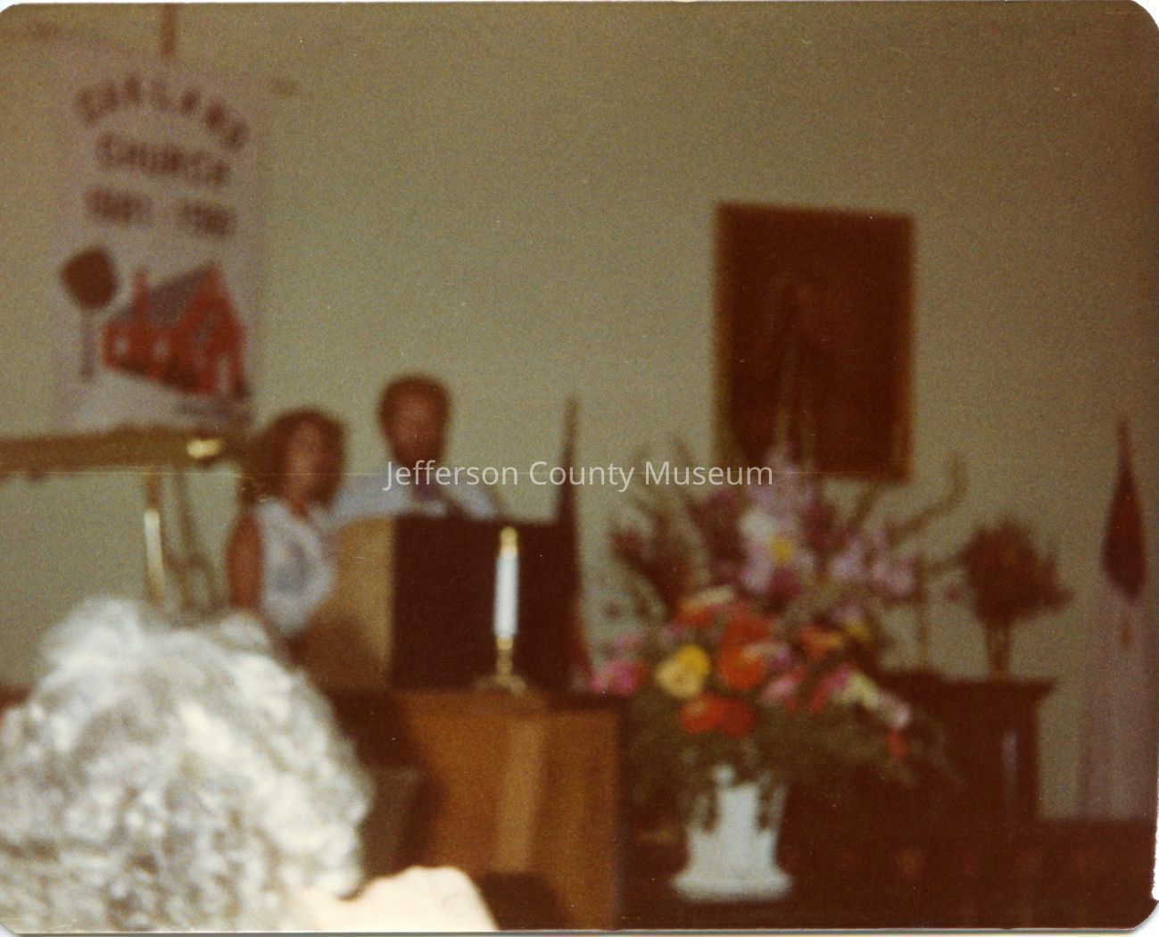 September 13, 1981 booklet from Oakland United Methodist Church Centennial Celebration, along with church service bulletin from the same day, and clipped to it was a label for Bob-White Baking Powder