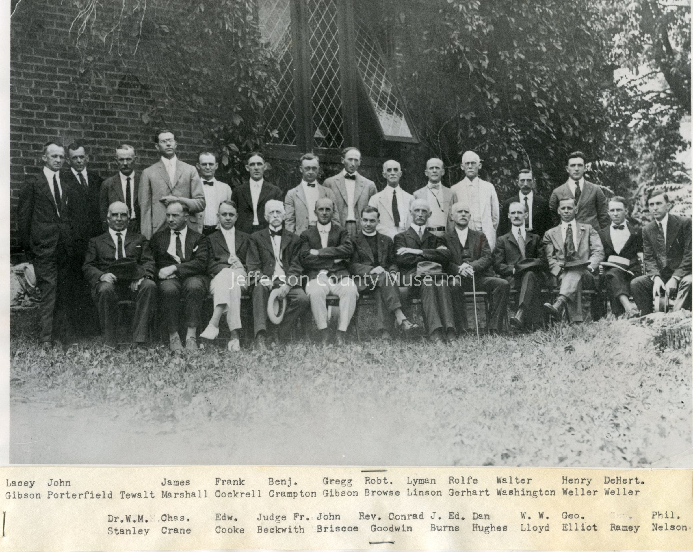 Men's Bible class at Zion Episcopal Church, c. 1922. Individuals labeled by name.