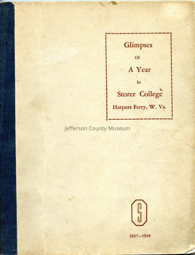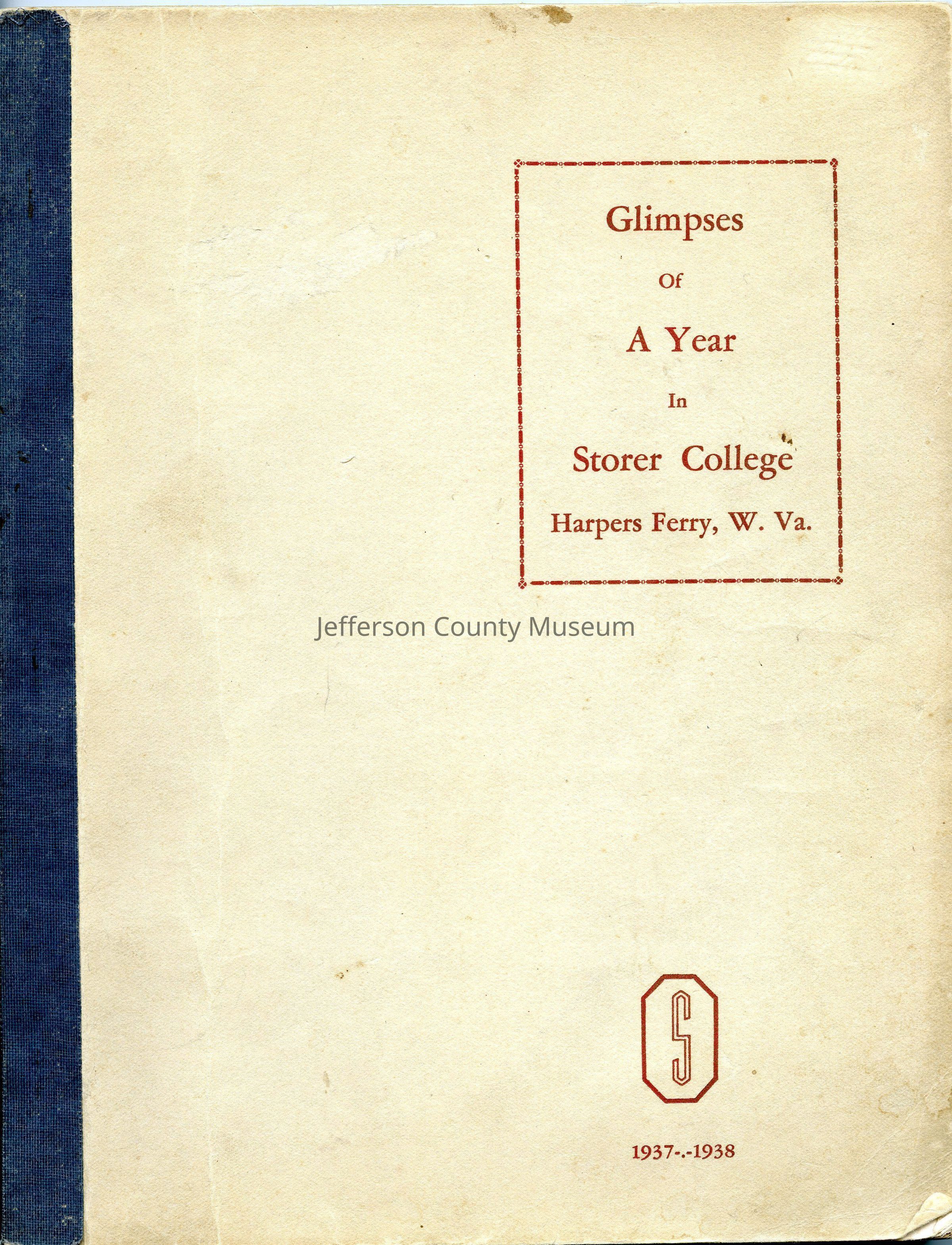 "Glimpses of a Year in Storer College Harpers Ferry, W. Va.," a bound collection, of programs and other information on events sponsored by or held at Storer College during the 1937-38 school year, including plays, concerts, lectures, declamatory contests, athletic events, and Founders Day. At bottom right of front cover is octagon containing a stylized "S", with "1937-.-1938" below.Acquisition