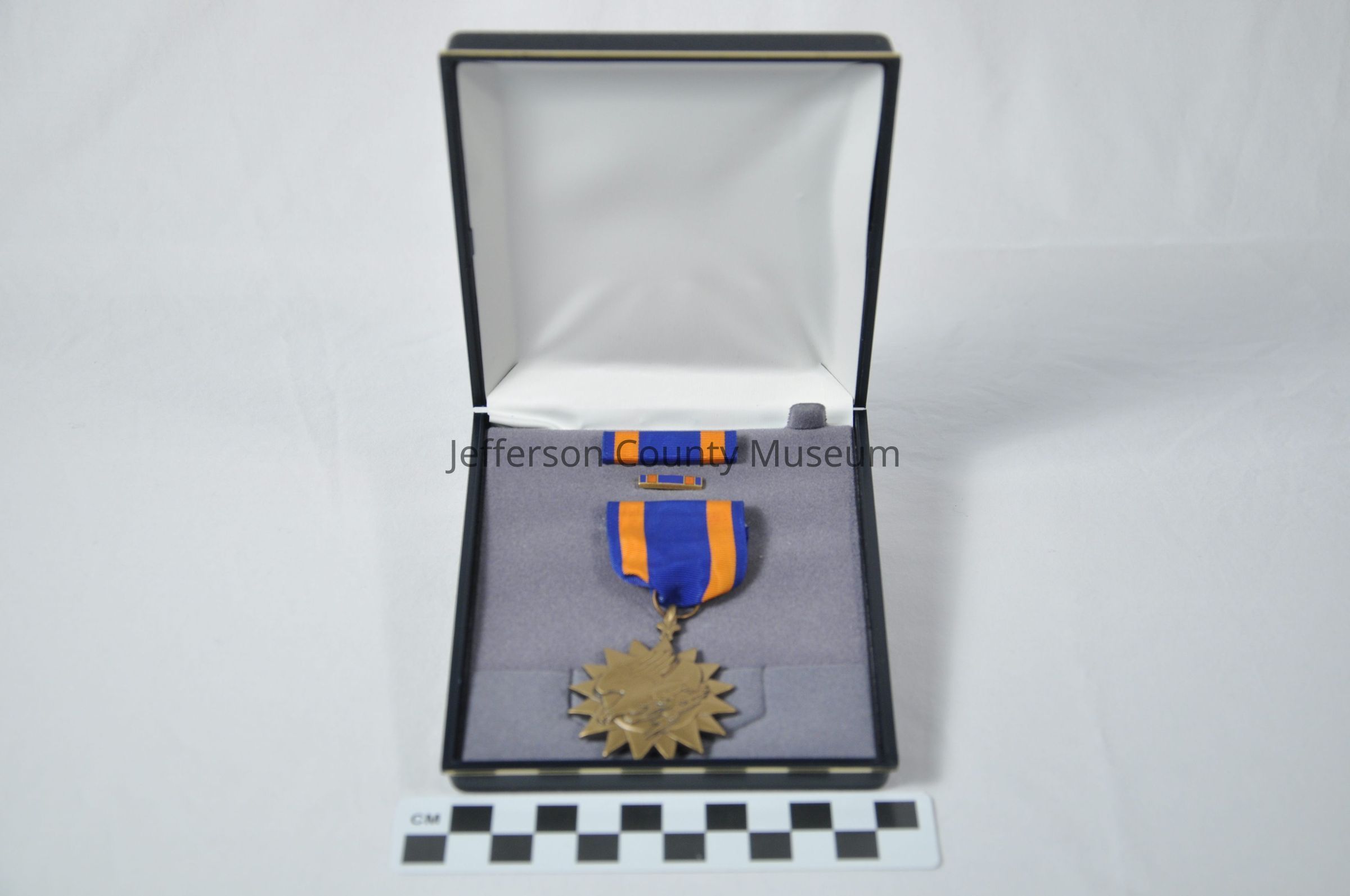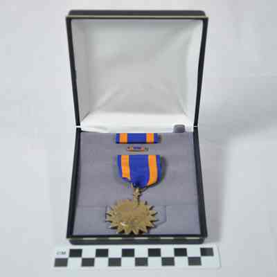Cat. #1131D is dark blue box holding medal. On outside of box is "UNITED STATES OF AMERICA".Acquisition