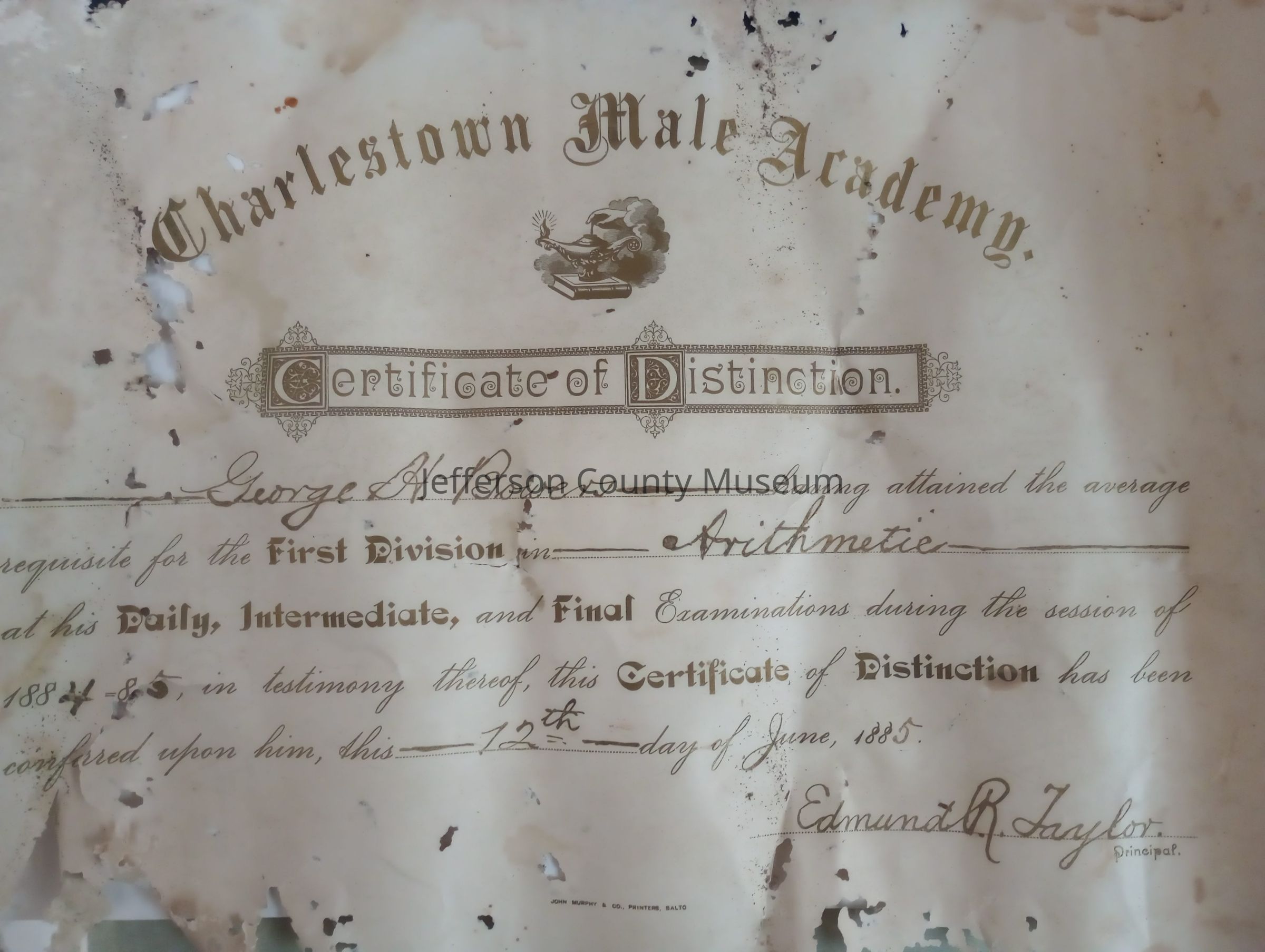 Certificate of Distinction from the Charles Town Academy. Presented to George Bowers for Arithmetic. Signed by Edmund R. TaylorAcquisition