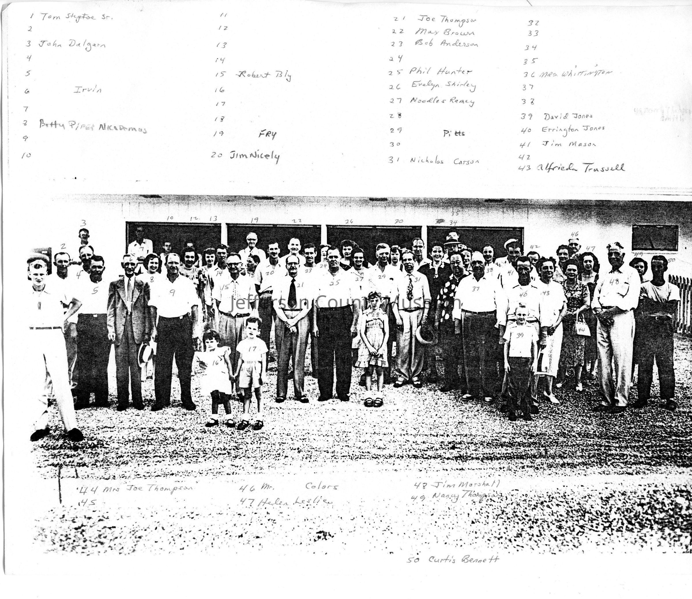 Men, women, and children with a number of the individuals identified.