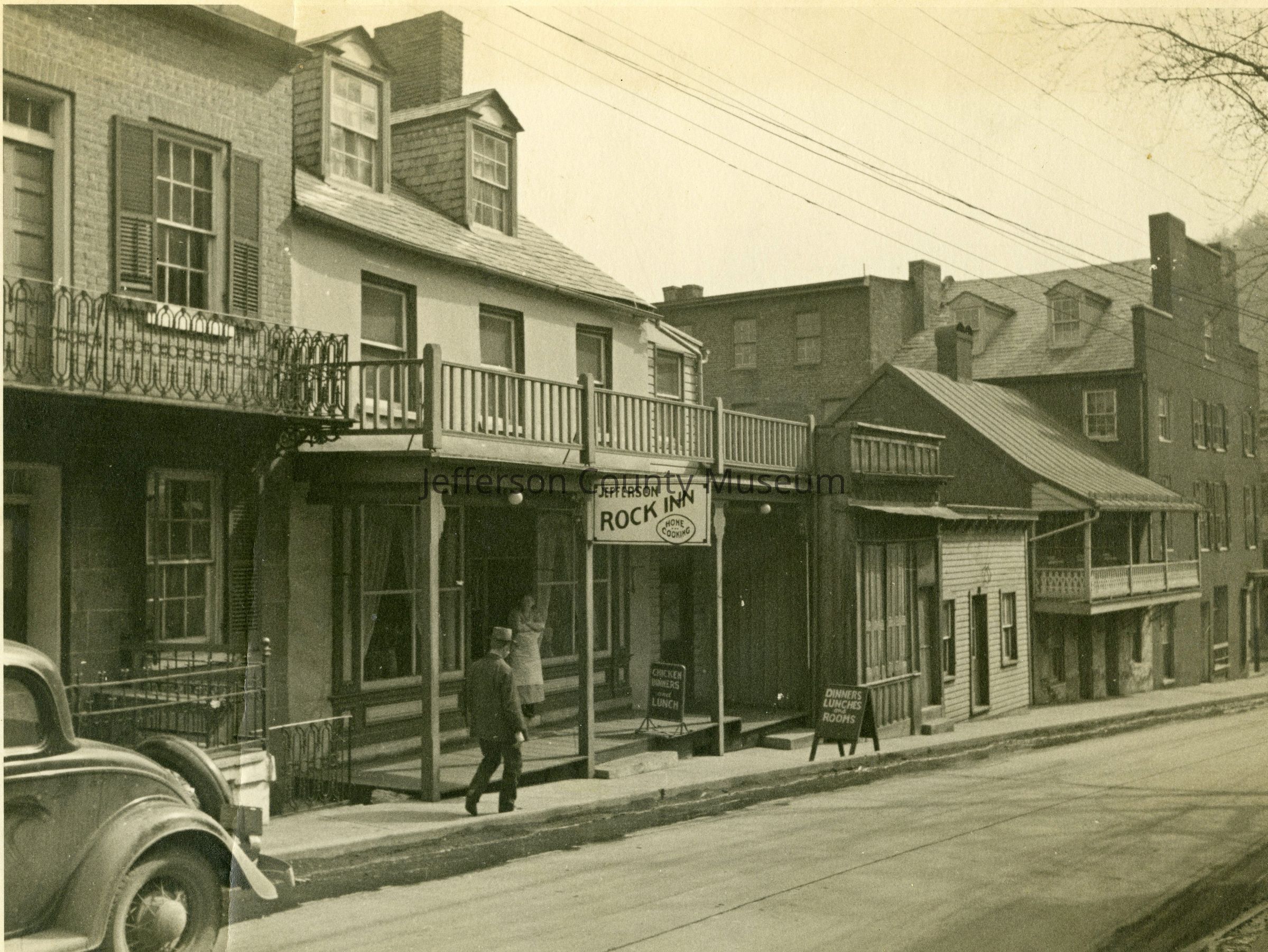 Roeder's Confectionary and the Jefferson Rock Inn on High Street in Harpers Ferry. Building owned by Susan Downey and the Jefferson Rock Inn operated by the Rockenbaugh family.