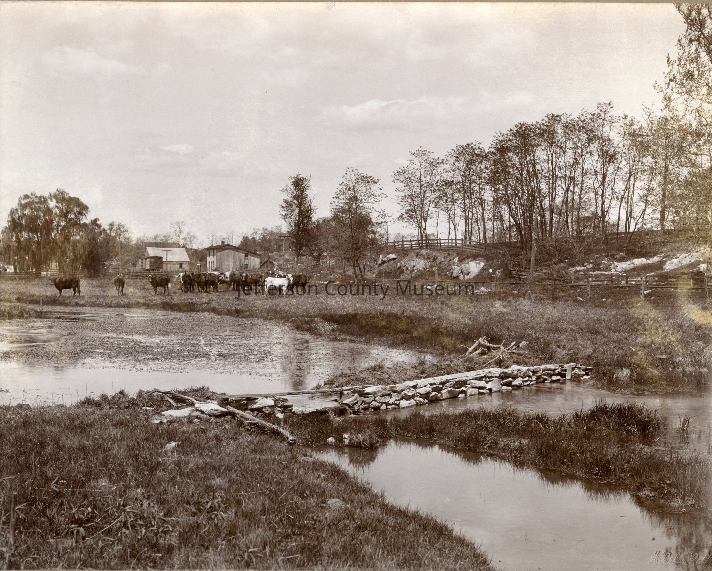 Vale of Harewood looking northwest, showing Cameron's Depot, the building on the right along with a train car on the track in the background