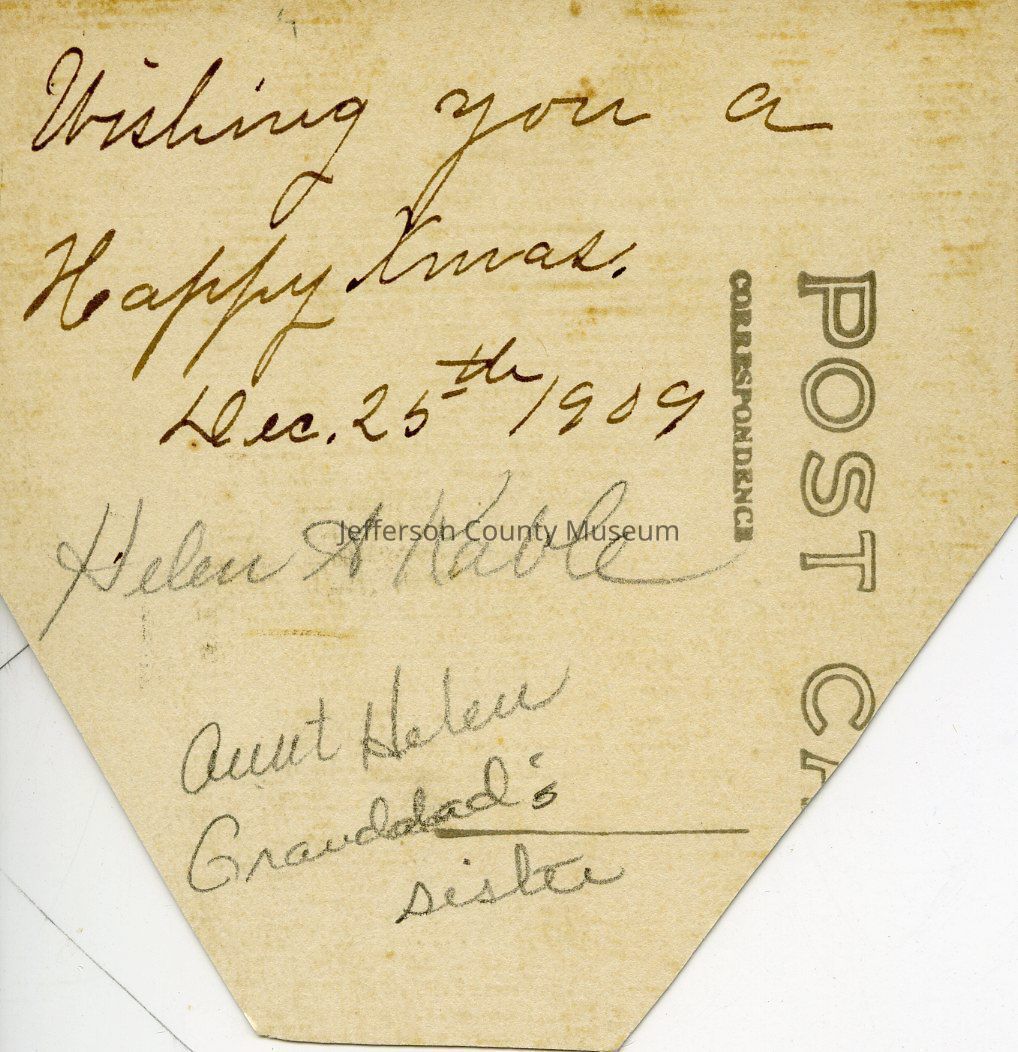Helen A. Kable, sister of Gary Kable's Grandfather. Back reads "Wishing you a Happy Xmas. Dec. 25th 1909".