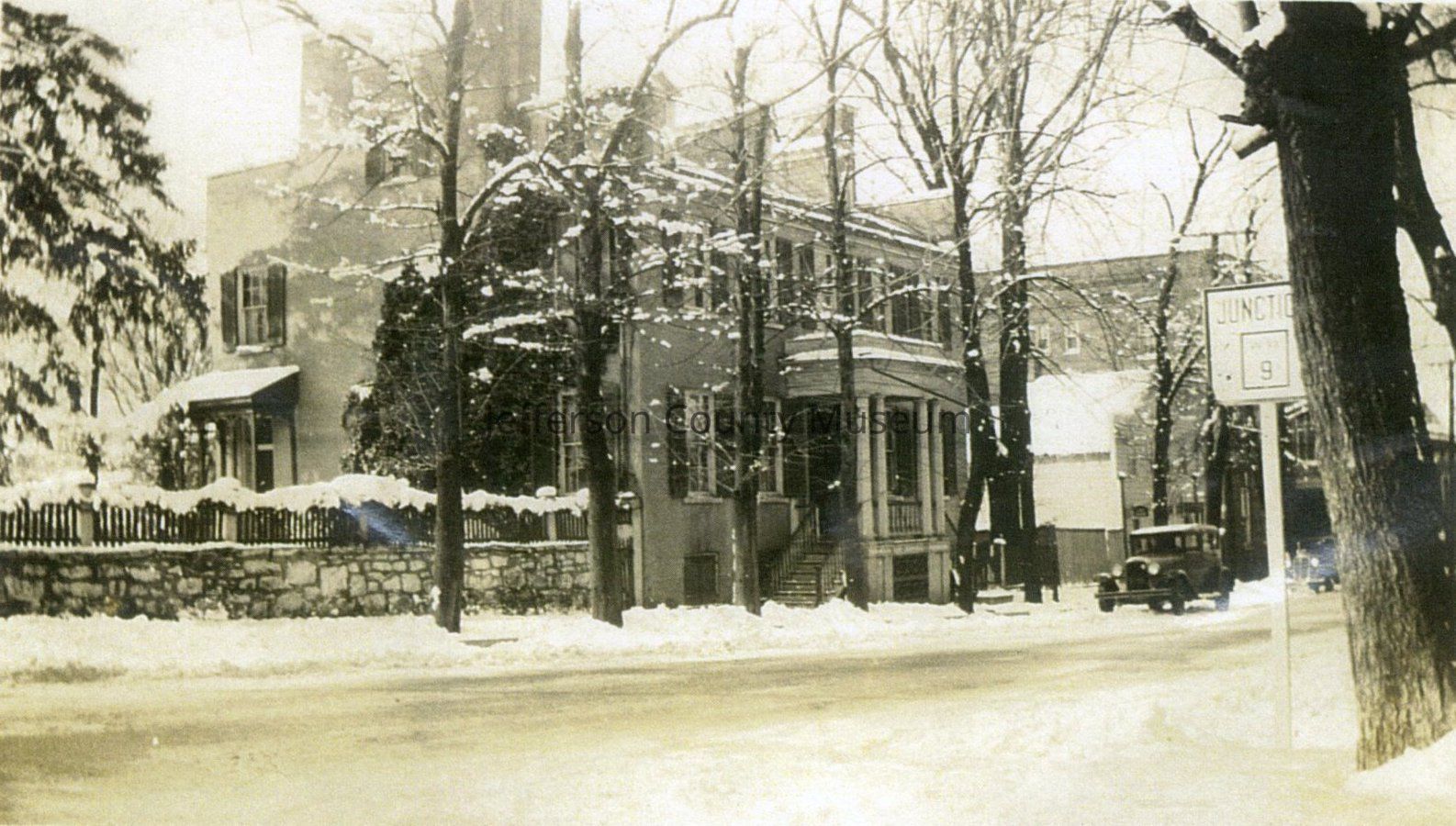 Accompanying newspaper article reads: "The house, according to records in the County Clerk's office, was built between 1844-46 by a Dr. Alexander who later resided on the farm now occupied by J. Henry Dutrow, on the Harpers Ferry pike. It was for years the home of Mrs. Rebecca Hunter, and later occupied by her daughter and son-in-law, the late Mr. and Mrs. William H. Travers, the grandparents of Mr. and Miss Coe."