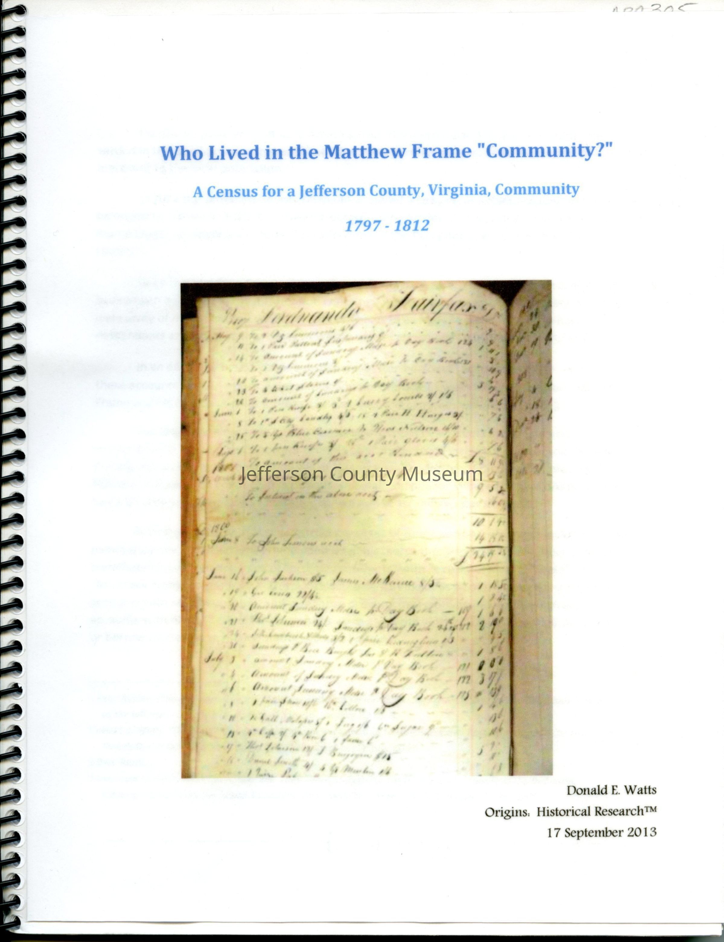 Who Lived in the Matthew Frame "Community?" A Census for a Jefferson County, Virginia, CommunityEntry/Object ID