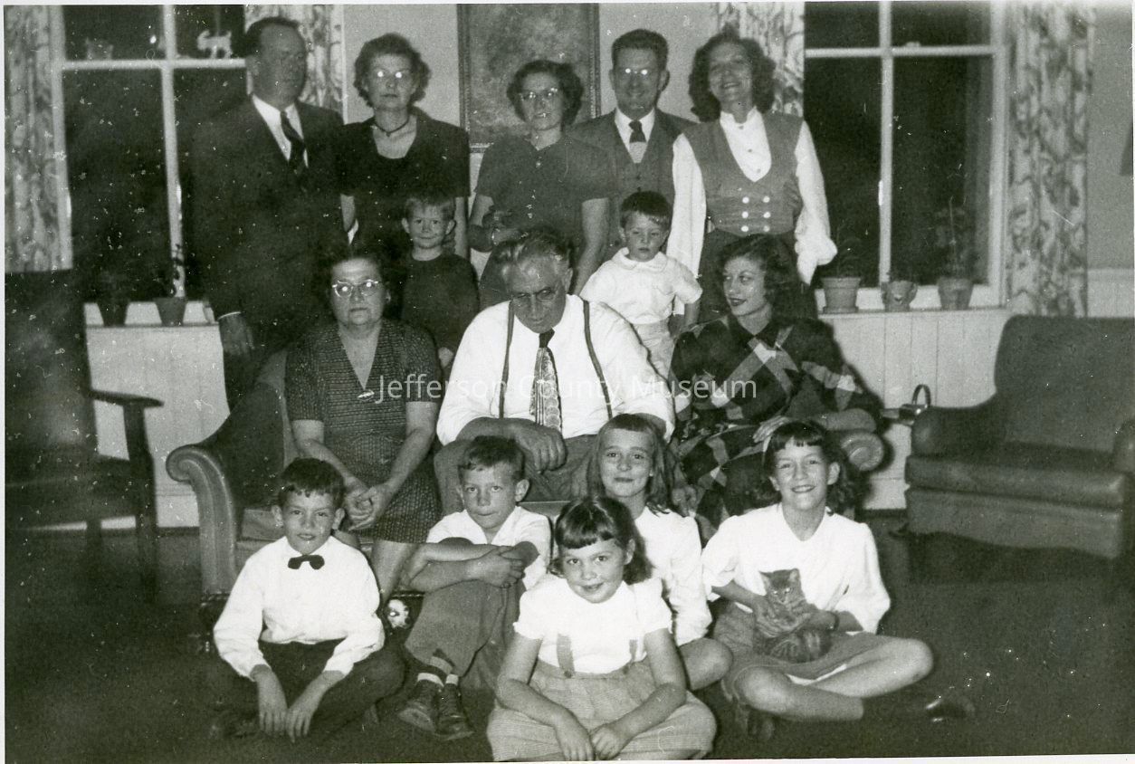 Back row, left to right: Don Kable (Gary Kable's father), Hilda Marshall Kable (Gary Kable's mother), Emory Alder Kable (boy in front of Hilda), Louise Marshall Pine, Steve Cline (Doris's oldest, boy in front of Edward), Edward Lee Pine, Jean Marshall O'Bannon