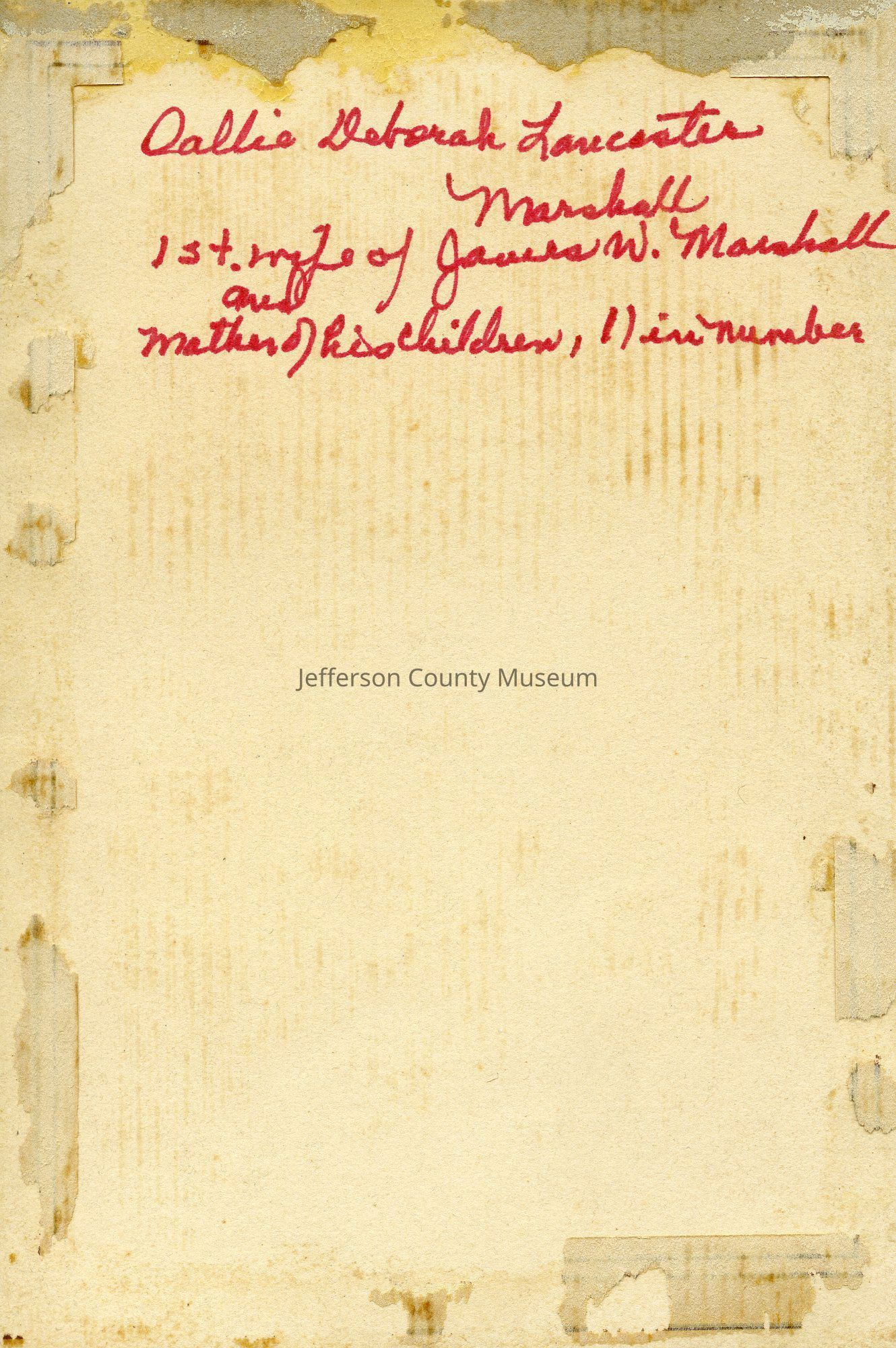Sallie Deborah Lancaster Marshall, first wife of James W. Marshall and mother of his 11 children. Gary Kable's great grandmother.