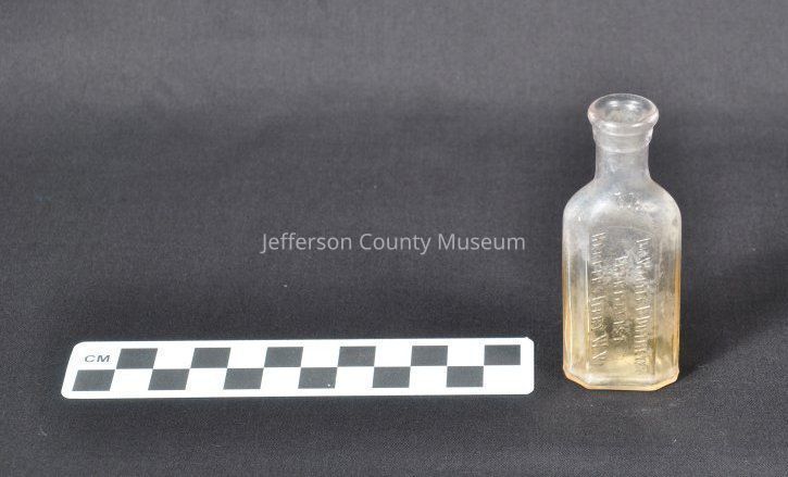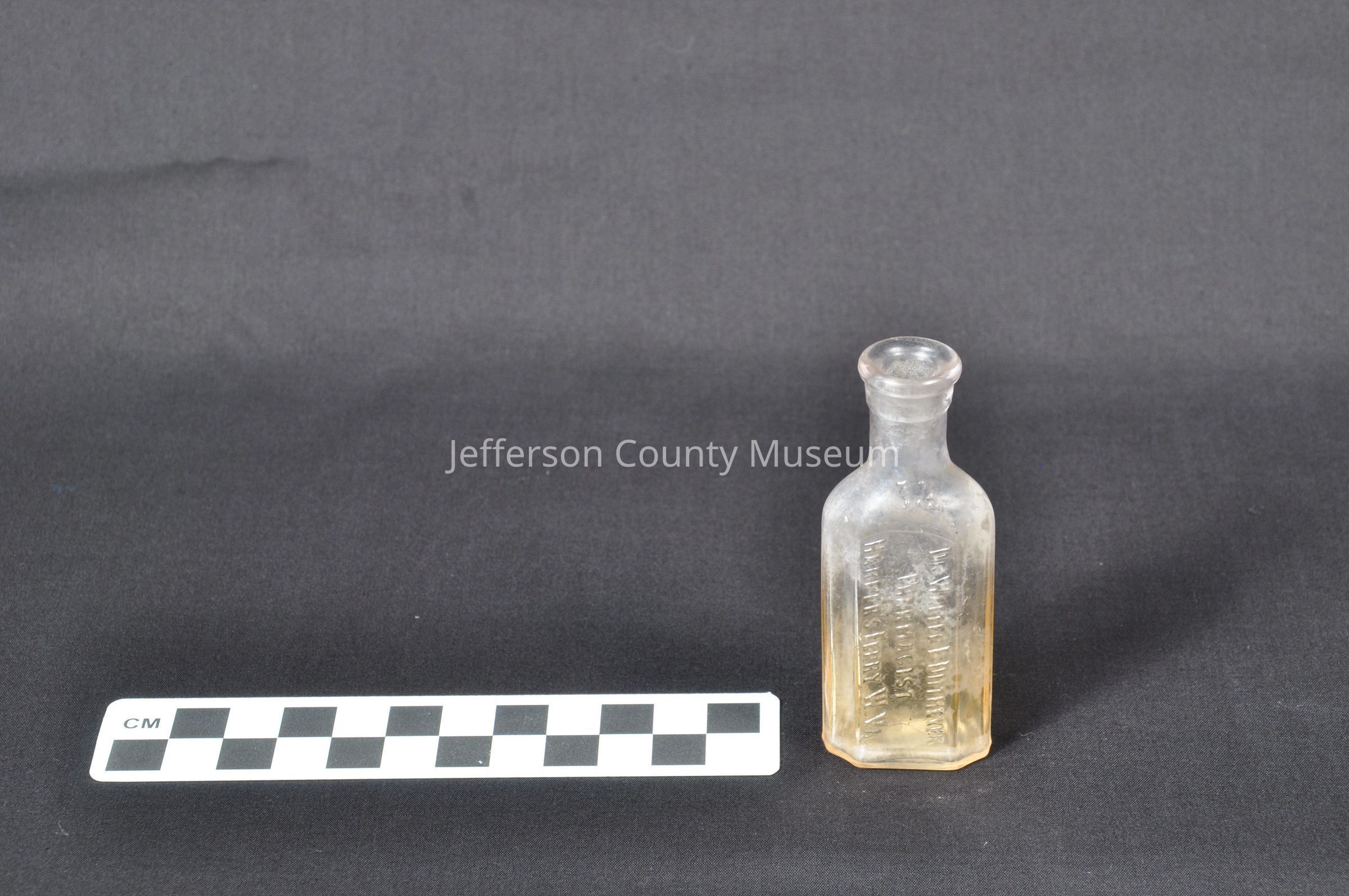 Clear, glass pharmacy bottle, embossed with text: DR. WALTER E. DITTMEYER PHARMACIST HARPER'S FERRY, W.VA.Acquisition