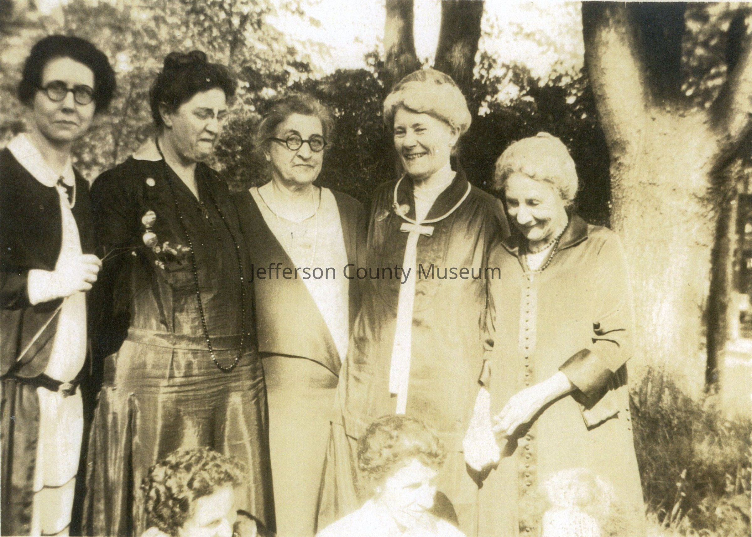 Handwritten note reads: " My mother has written on back of this photo in no particular order Mrs. Alma Strider, Miss Lou Gallaher, and Mrs. Wilson. The Mrs. Wilson probably should be Miss Wilson would be Carrie Wilson, sister of Mrs. Dr. Mary Miller. "Acquisition