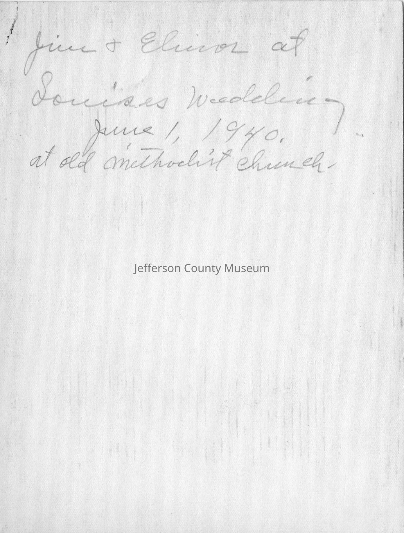 "Jim and Elinor at Louise's wedding, June 1, 1940, at old Methodist Church"