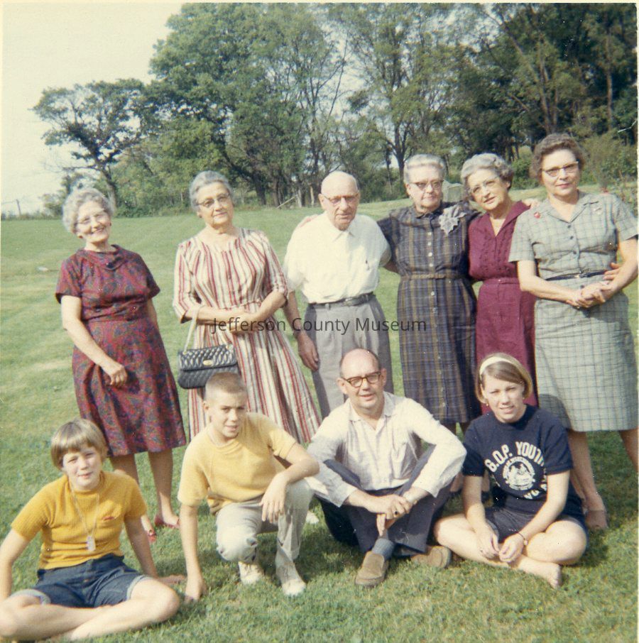 (Back row, left to right) Aunt Rose, ? Crabbe, Grandmother Edna, two unknown women, Aunt Eva, unknown woman