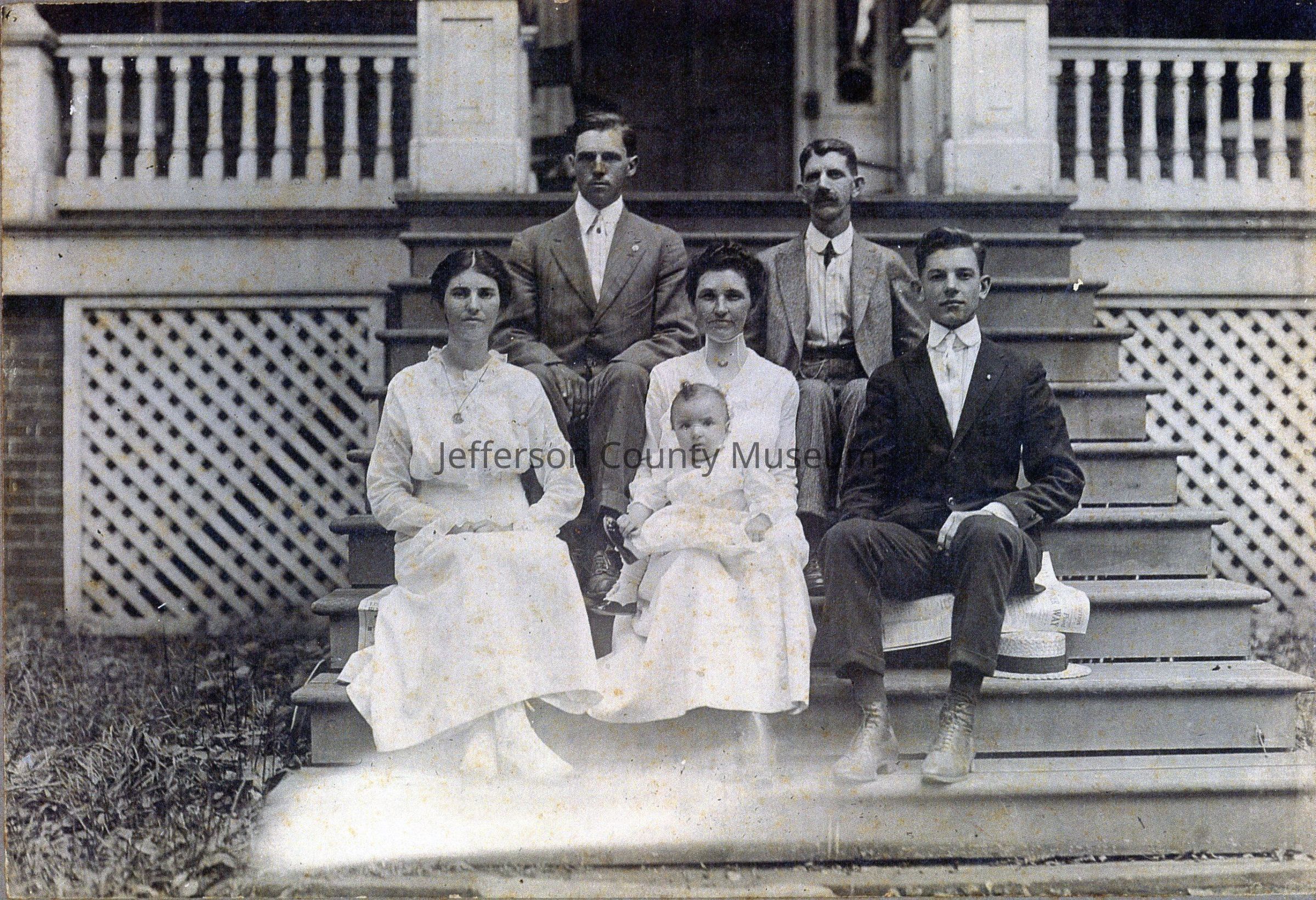 Handwritten note reads: "My grandparents and my Dad and my Aunt Lona and husband Clarence Cline. Left to right: Lona Orndorff Cline, Clarence Cline, Frances Jane Fishel Orndorff with son Richard Orndorff, Robert Johnson Orndorff and Marshall Lee Orndorff"Acquisition