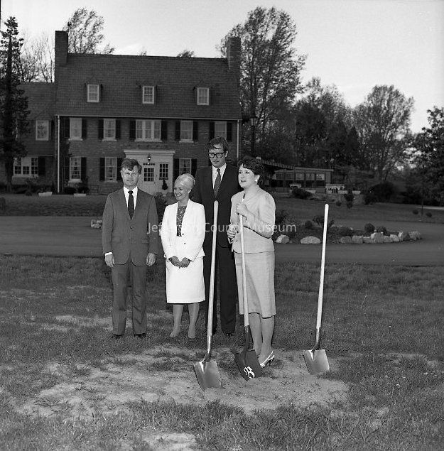 Ground breaking at Bavarian Inn, Shepherdstown. Left to right: Erwin Asam and Carol Asam, owners of Bavarian Inn; West Virginia Governor John D. Rockefeller IV; and unknown person.