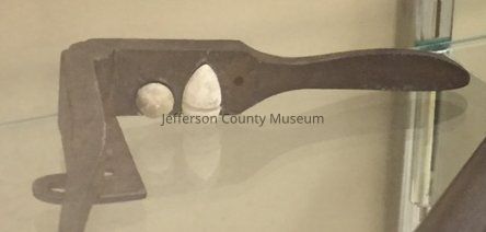 Round ball bullet donated for display in a bullet mold (Obj #141) in the Bullet Exhibit (Case 47).