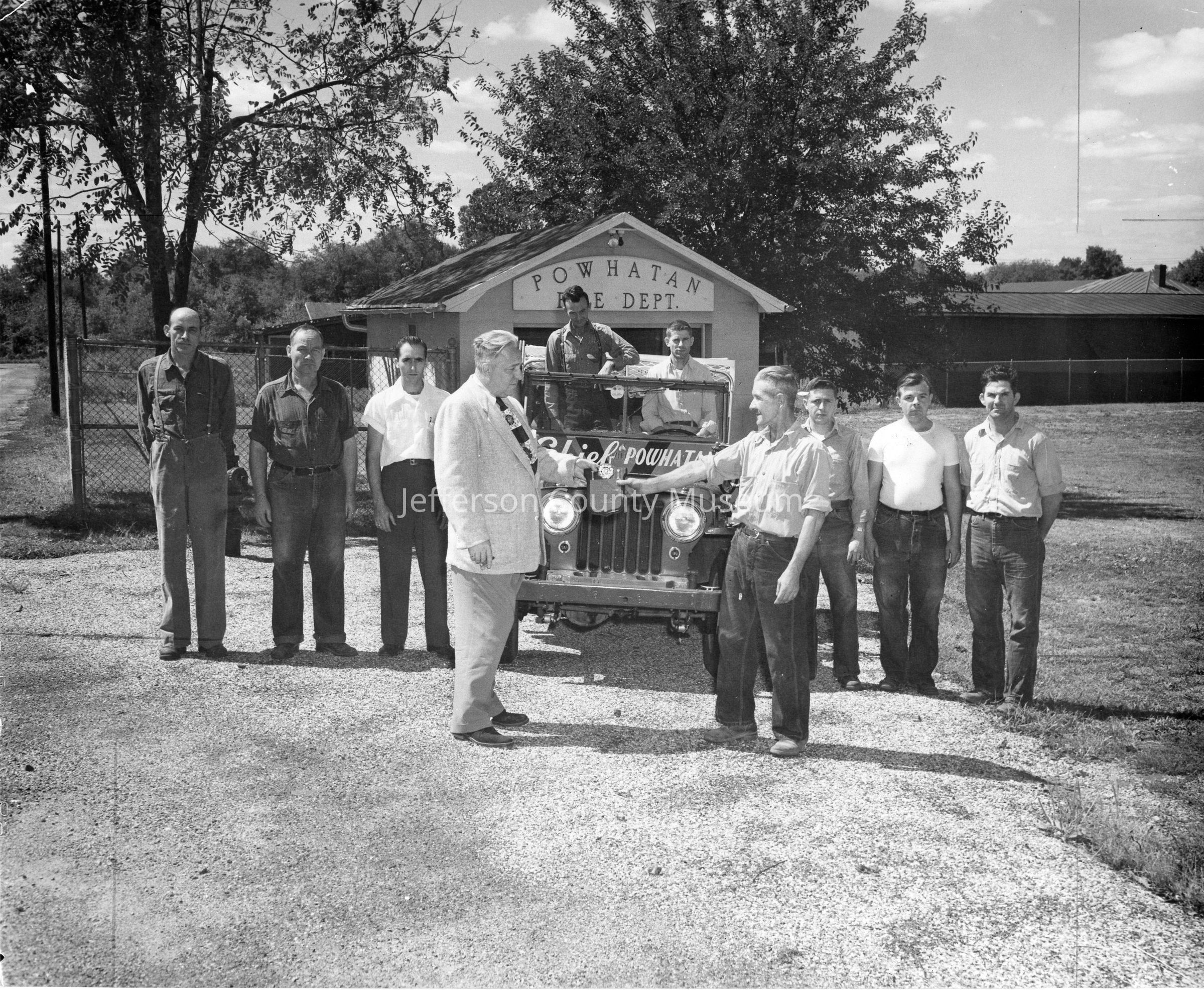 Employees at Powhatan Fire Department gathered for "Mutt" James' retirement, July 6, 1975.