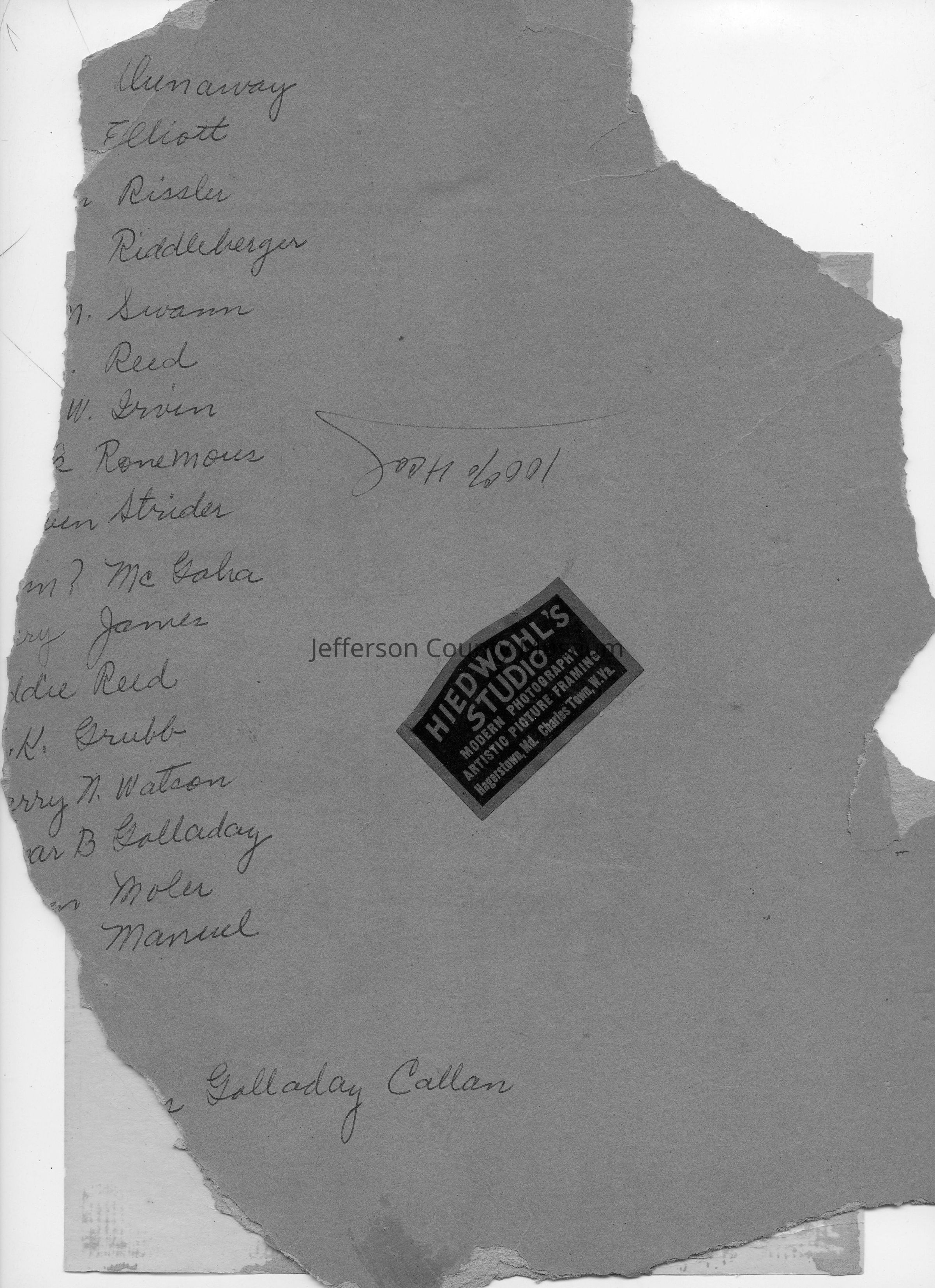 "Hiedwohl's Studio, Modern Photography, Artistic Picture Framing, Hagerstown, Md. Charles Town, W. Va" written on a sticker on the back.Acquisition
