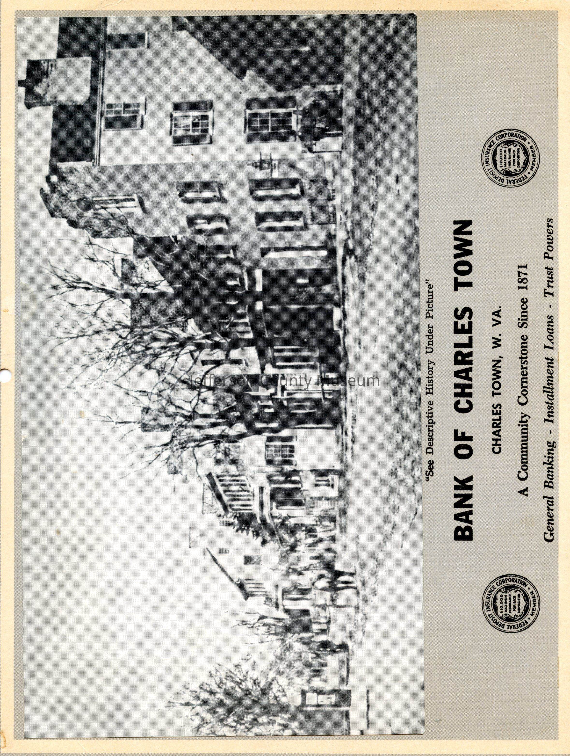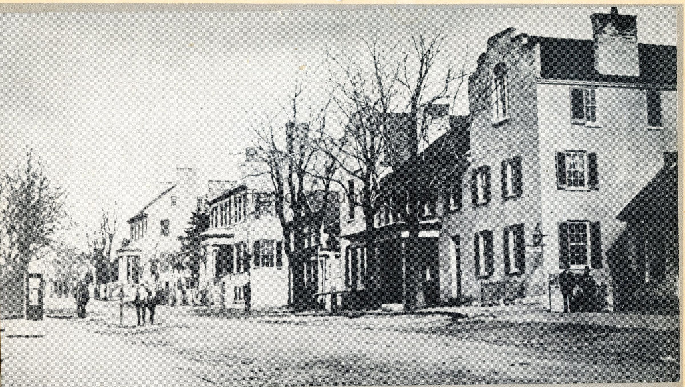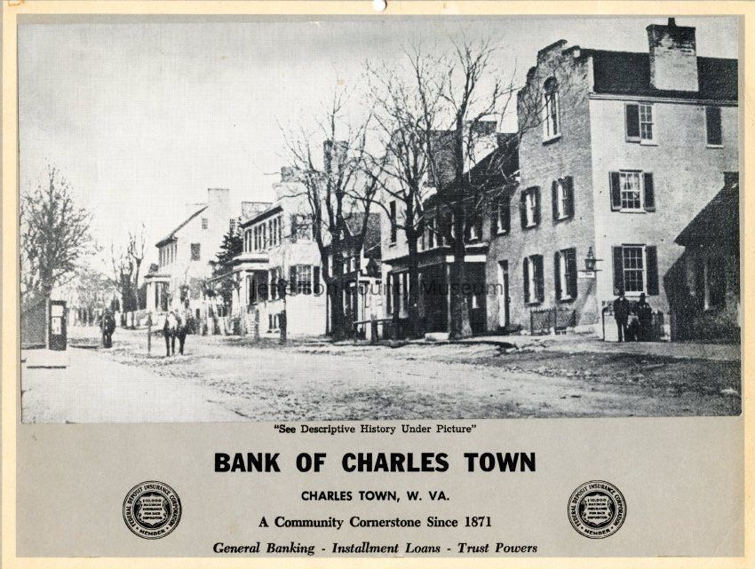 "This photograph of Washington (Main) Street, Charlestown, [West] Virginia, was taken from corner of Washington and George Sts. about 1862. Note the corner of Court House wall on left. The low building on right is where Bank of Charles Town now stands -- formerly lawyers row. The Carter House is the first building on the right. The picture looks East." (text from calendar)Acquisition