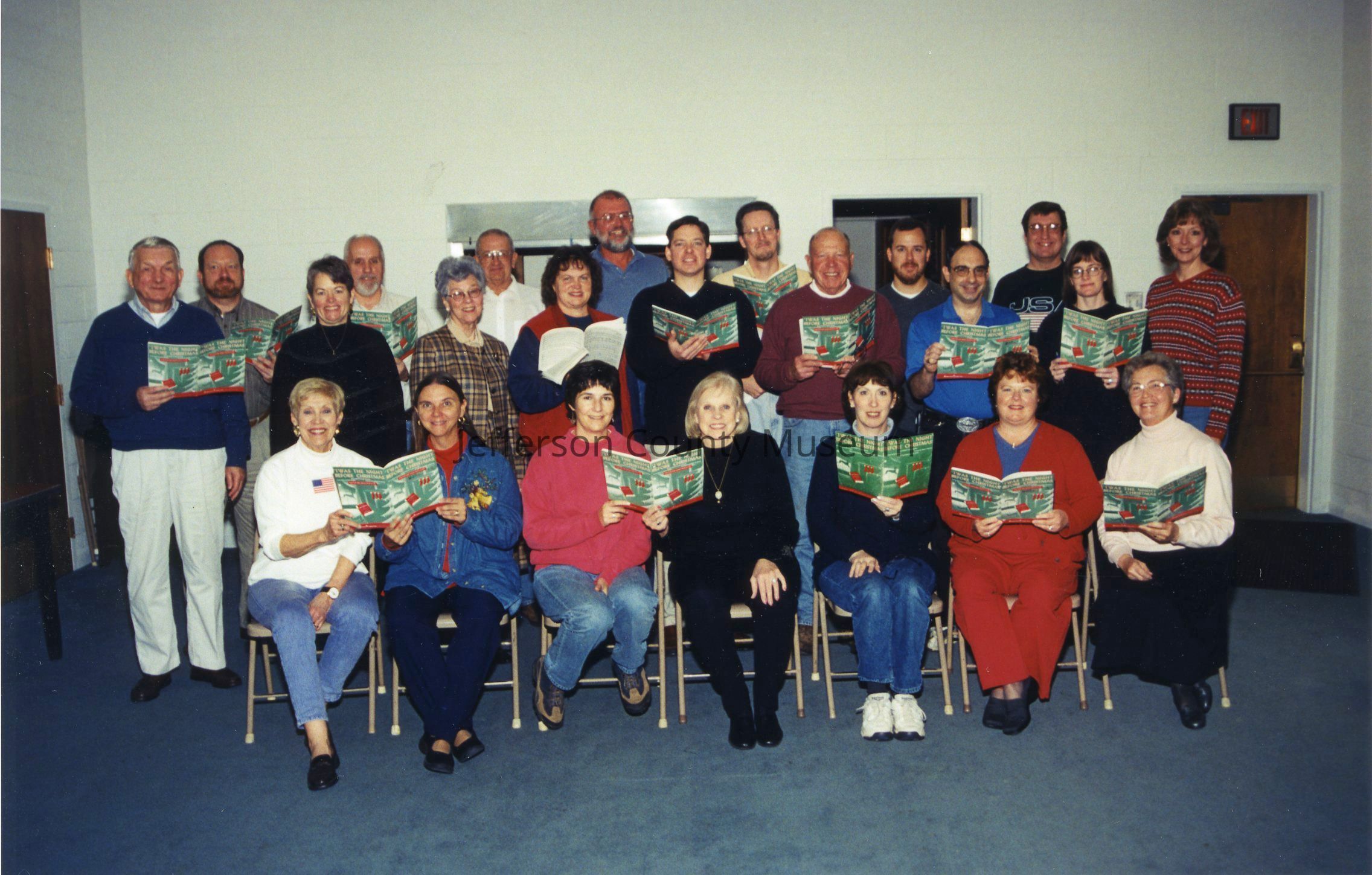 Charles Town Methodist Church singing group holding Christmas songbooks - possibly the choir