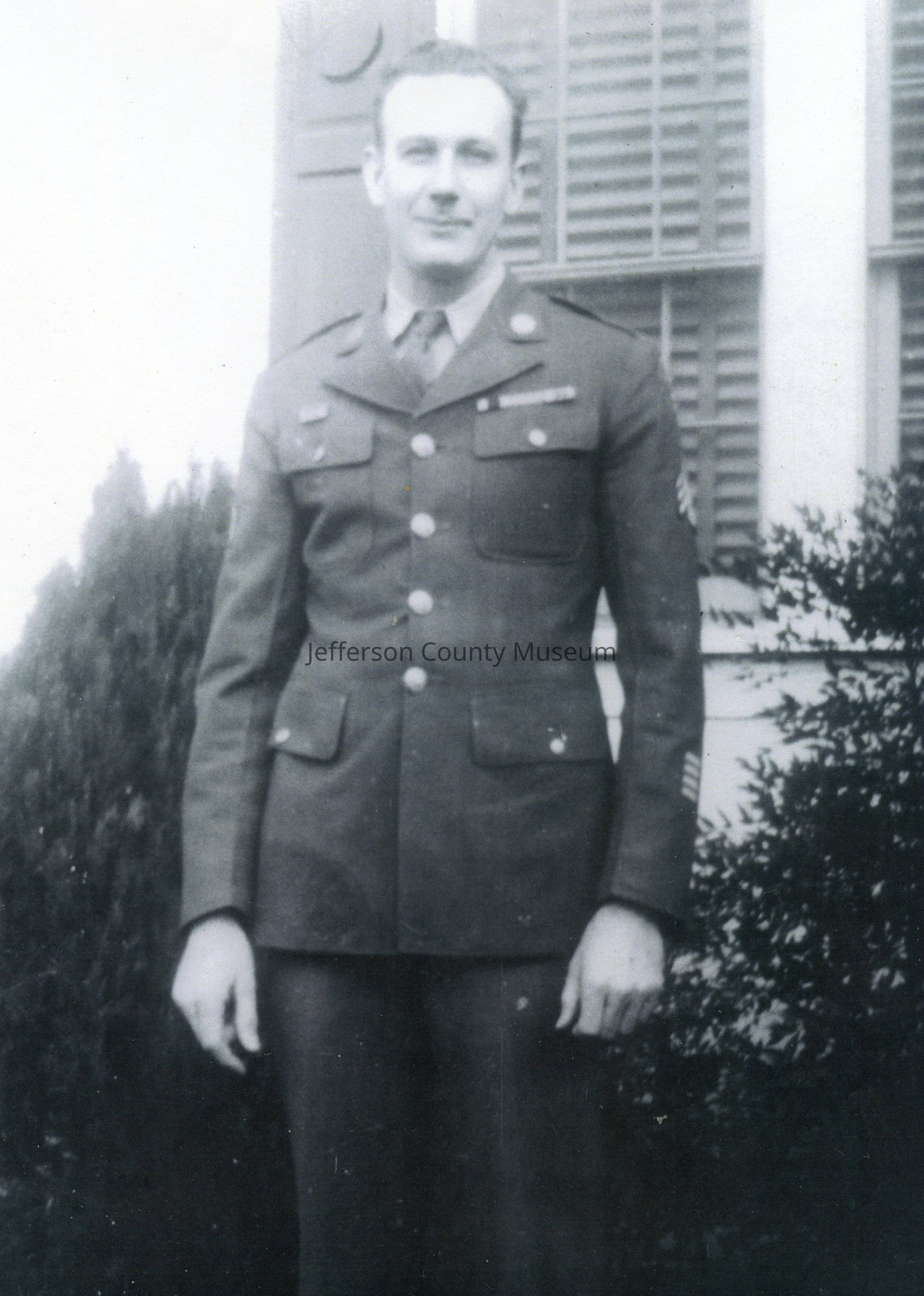 Accompanying handwritten note reads: "William Darke Moler Sgt-13001032, Born Nov. 14, 1917, This was taken after my tour of Combat in South Pacific, New Guinea 2 1/2 years. Awards: 2 Bronze Stars, Presidential Unit Citation under direct order from President Roosevelt not from Gen McArthur!, 5 other lesser awards."Acquisition