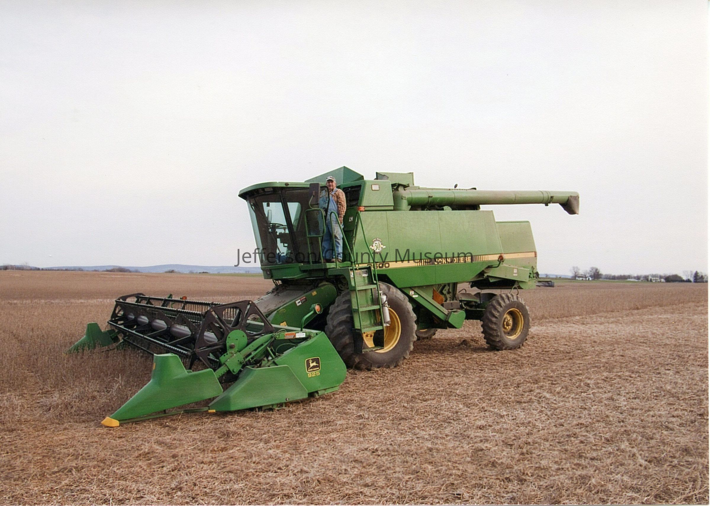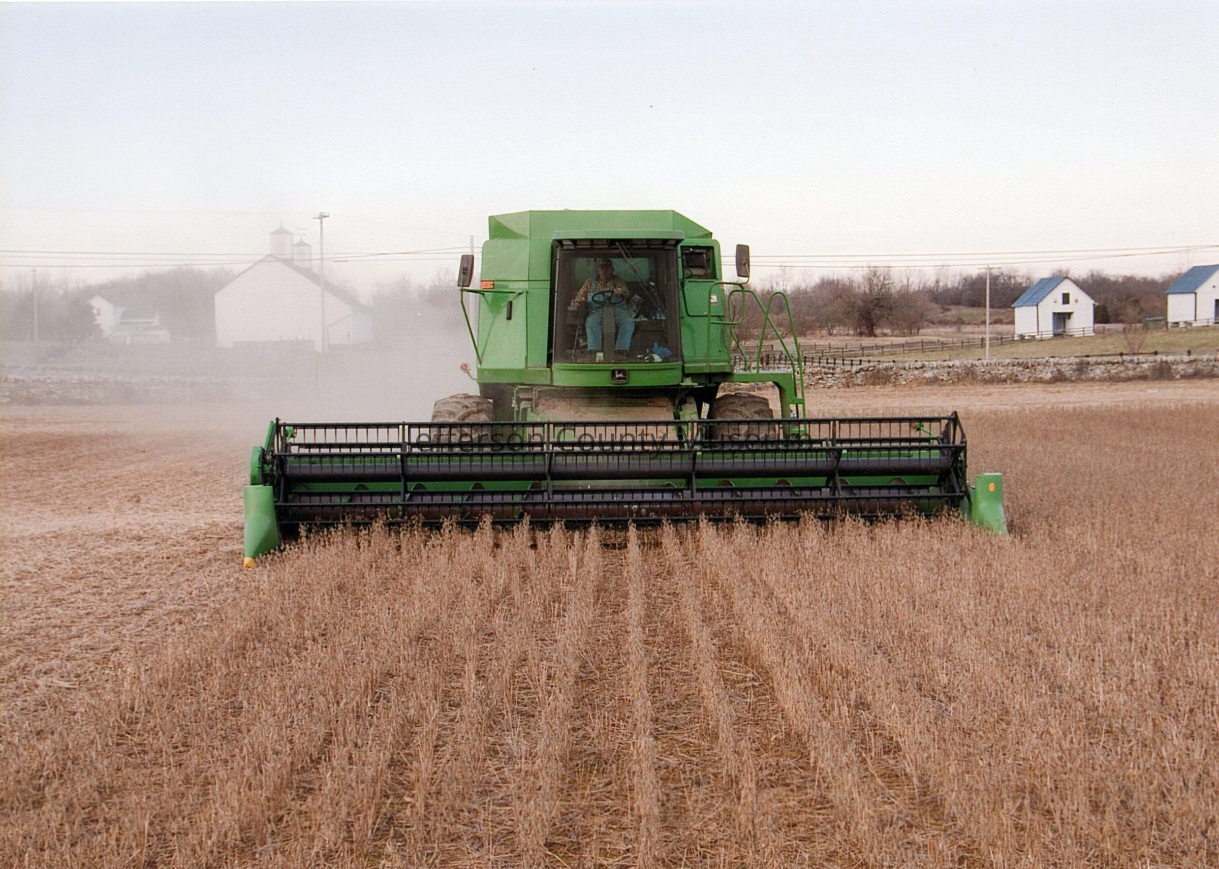 Combining soybeans in a field across from Davenport's Altona along Rt. 51, Richard Magaha's combine, ca. 2012-2013Acquisition