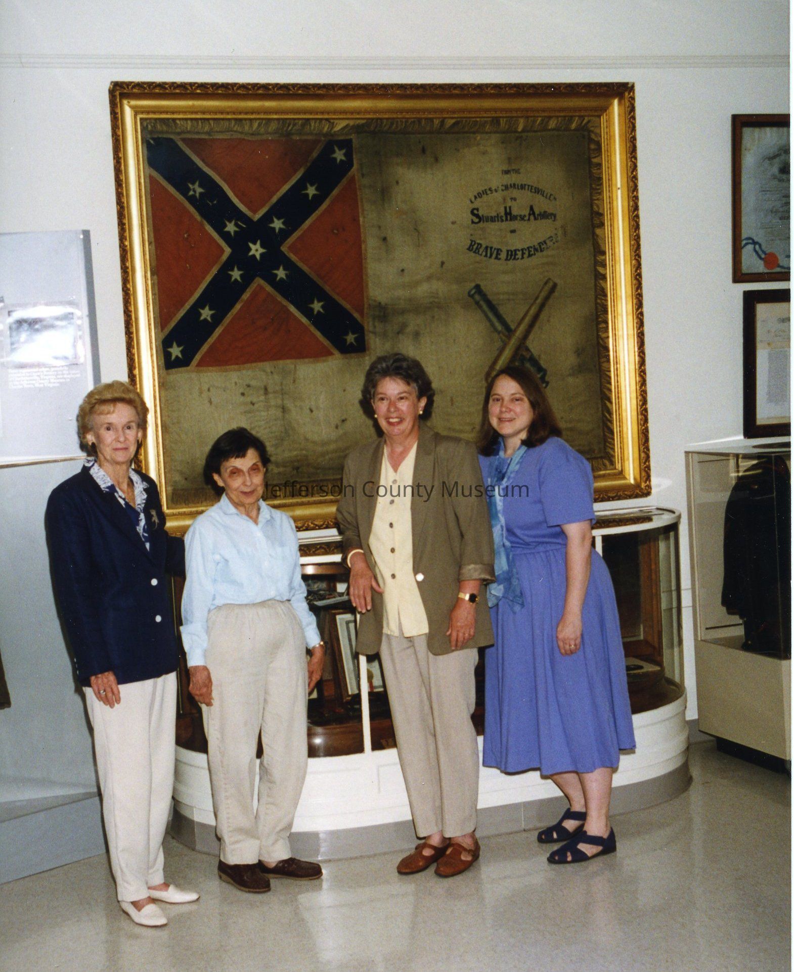Chew's flag (2nd National Confederate Flag carried by Chew's Battery of Stuart's Horse Artillery, Confederate Army) at the Jefferson County Museum with curator Sue Collins and three other museum staff.