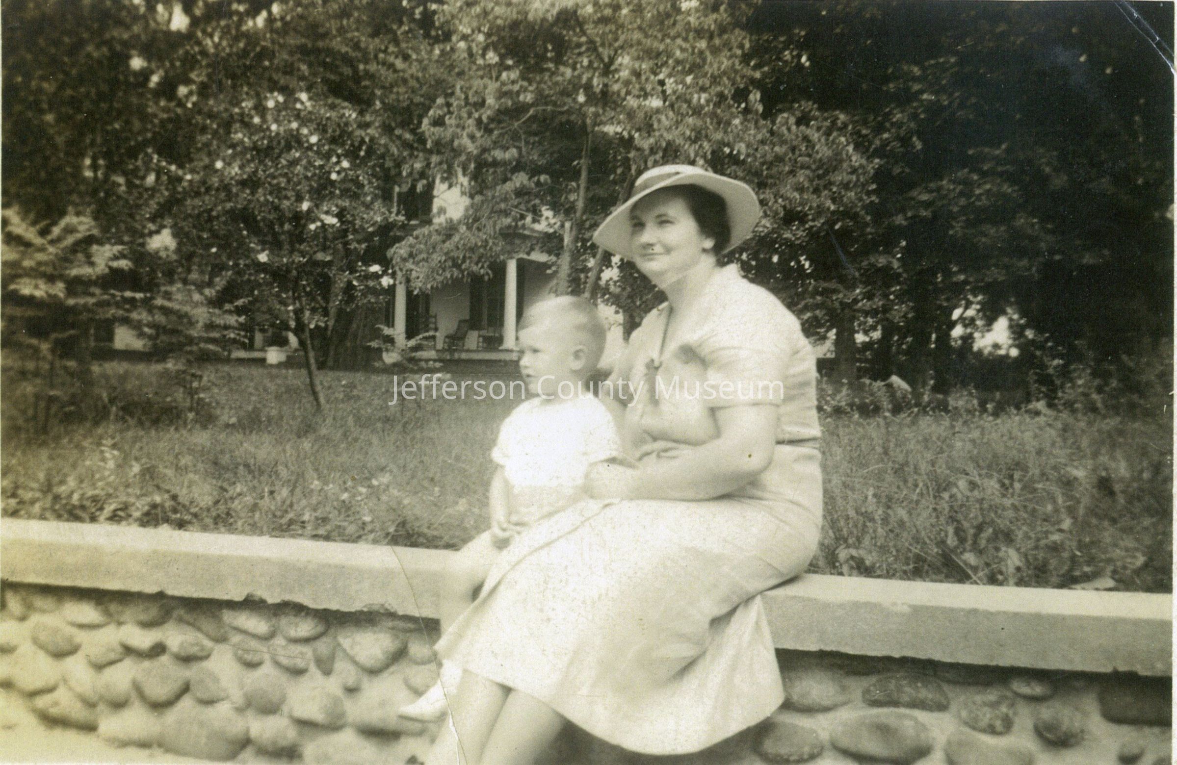 Robert S. Orndorff writes: "Location - Front stone wall of Forrest Brown home on Samuel Street which is located directly across from 644 S. Samuel St. - The Orndorff home. In 1936 I would have been 4 years old. My mother is sitting with me."Acquisition