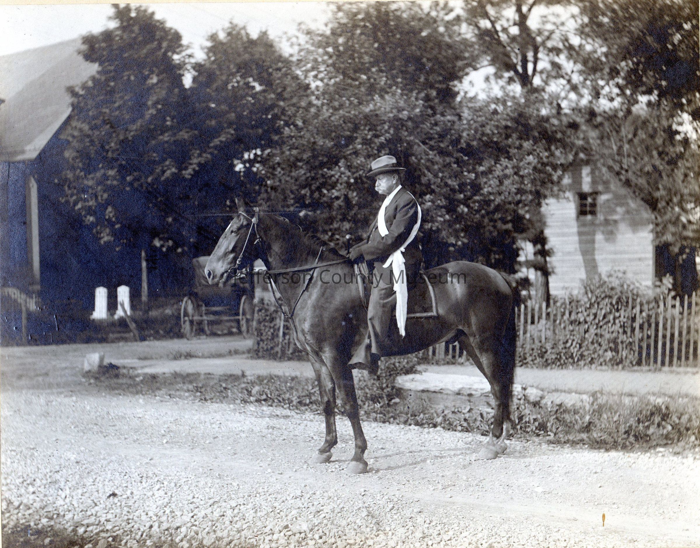 Captain John F. Foley, Chief Marshal, Confederate Memorial Day on his mount Dixie Chew at the corner of Methodist Church