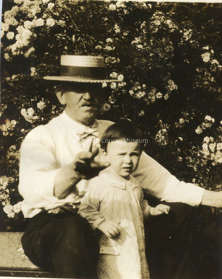 Jenkins-Melvin family photograph of a man in a straw hat and a child