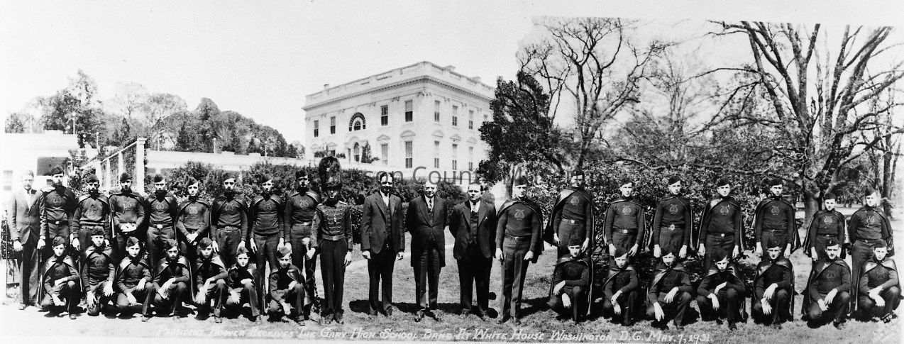 President Hoover receives the Gary High School Band at the White House, Washington, D.C. May 7, 1931.Acquisition