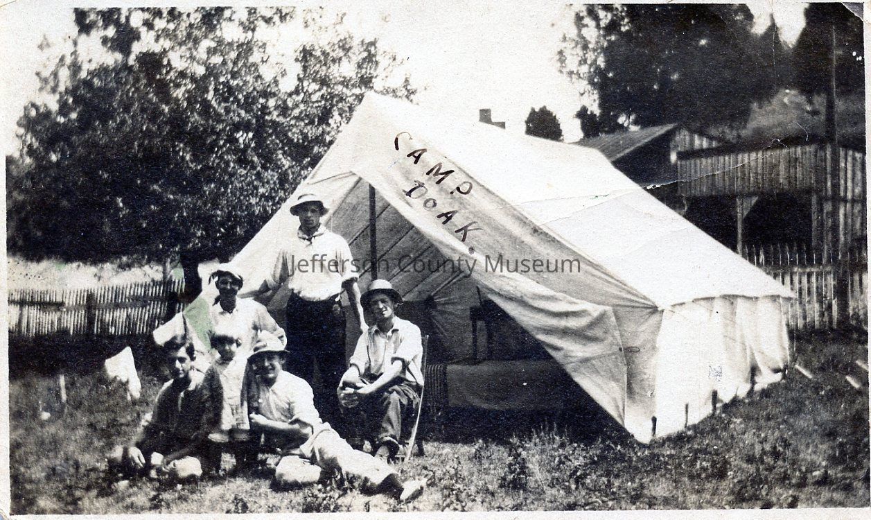 Photo reads: "Camp Doak" Verso reads: "Presented by Mr. John Anthony Mars Rogers, August 23, 1910. ??? before power pllant, Millville"Acquisition