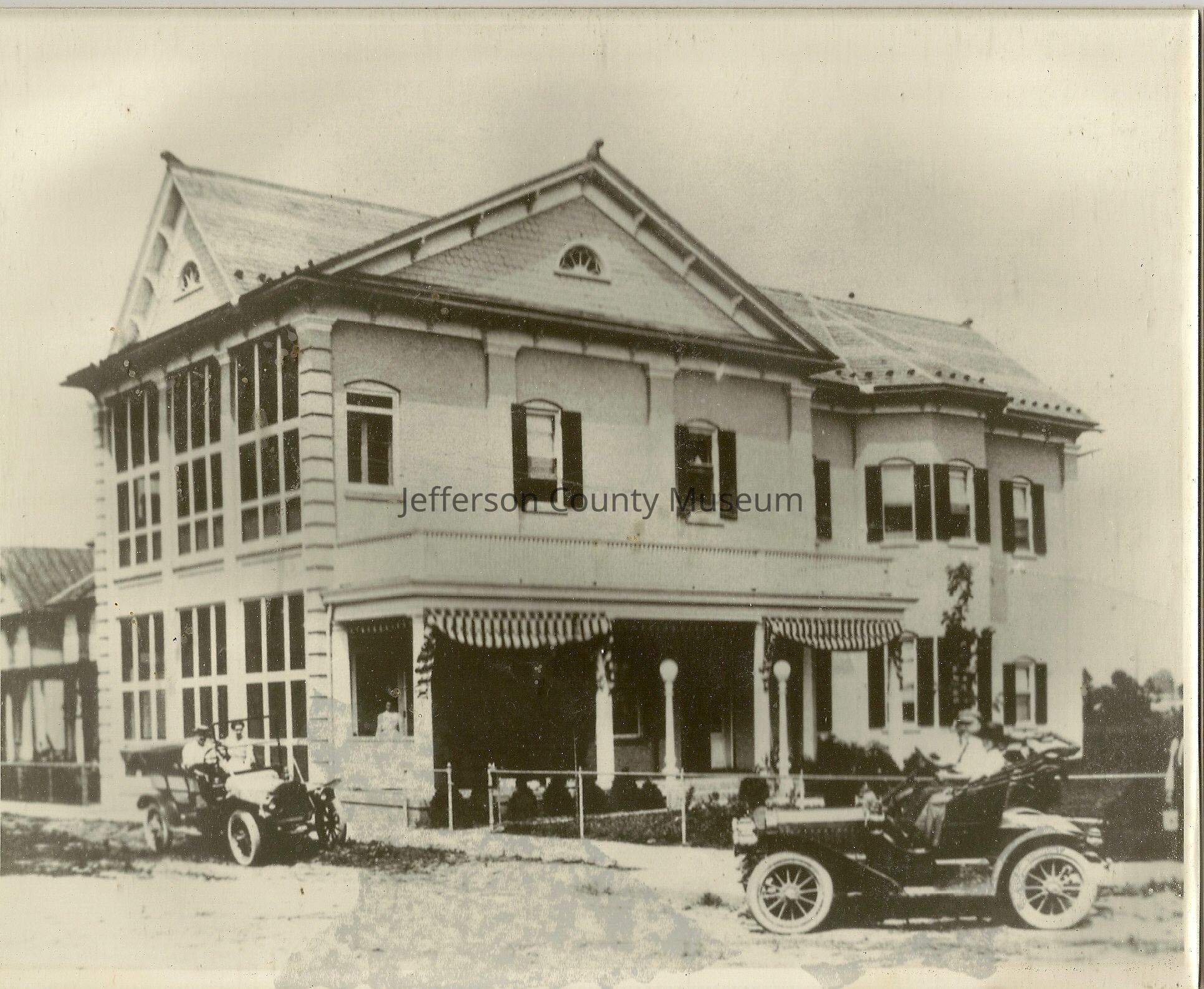 A.D. Goetz house on northwest corner of Fairfax Boulevard and Third Avenue (now the Melvin T. Strider Colonial Funeral Home), 1909; cars are 1908 Mitchell Touring and 1909 Mitchell Roadster. Image stored as a jpeg.Acquisition