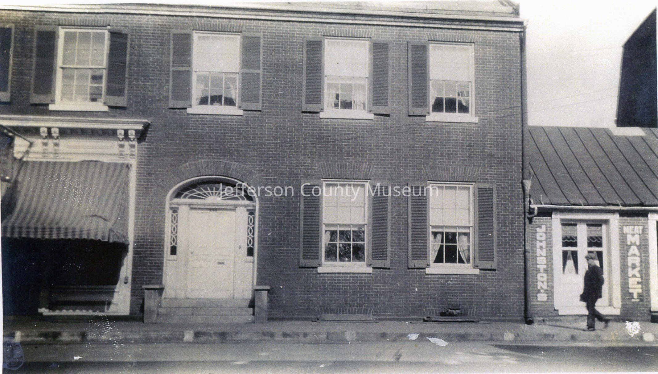 Lock house on Main Street, also showing Johnston's Meat Market (northeast corner of Lawrence and Washington Streets)
