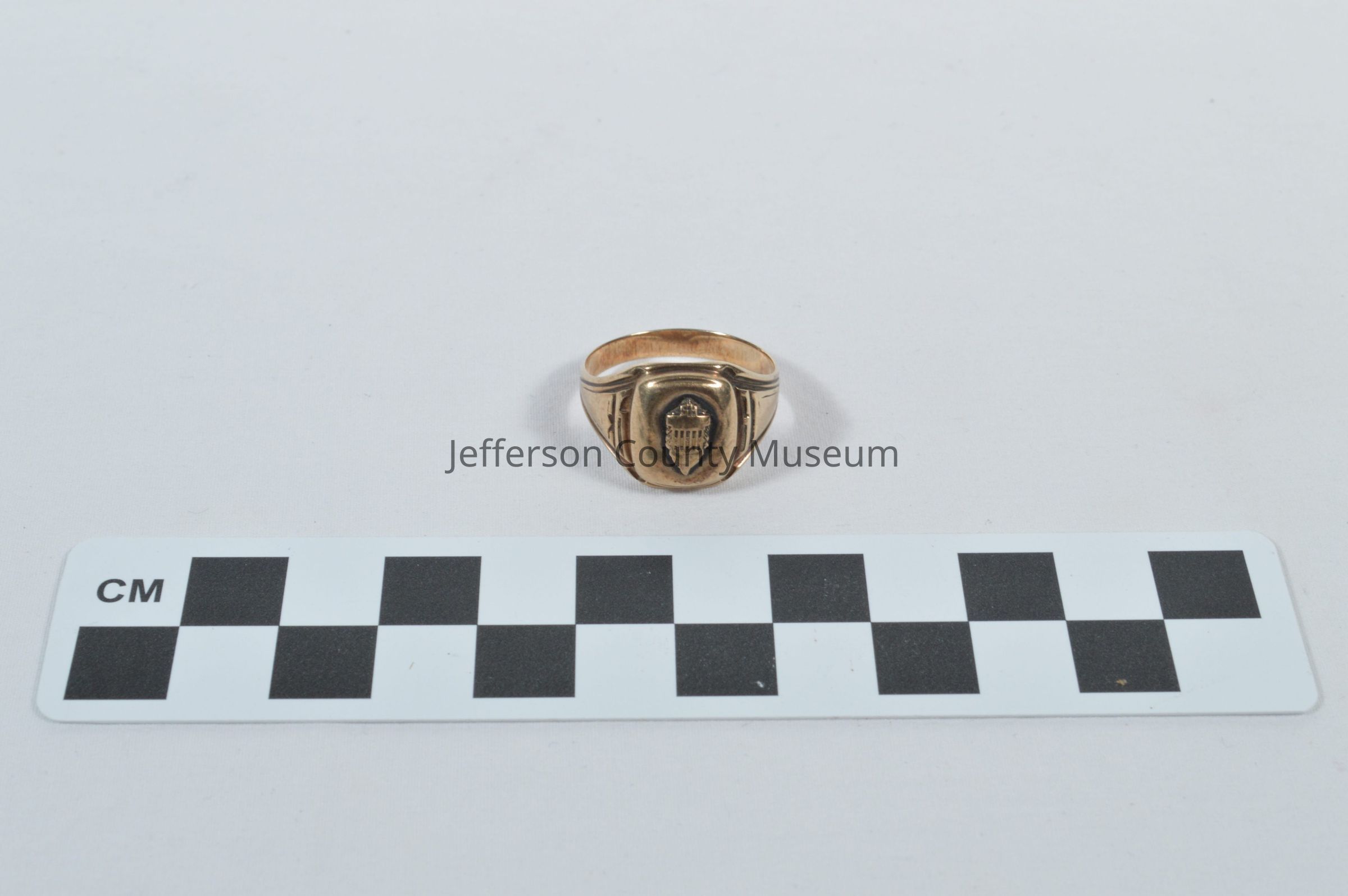 10 karat gold class ring. No stone, school crest on top of ring. Probably around a size 10 or 11.Acquisition