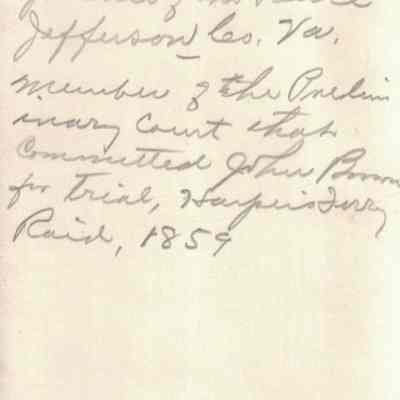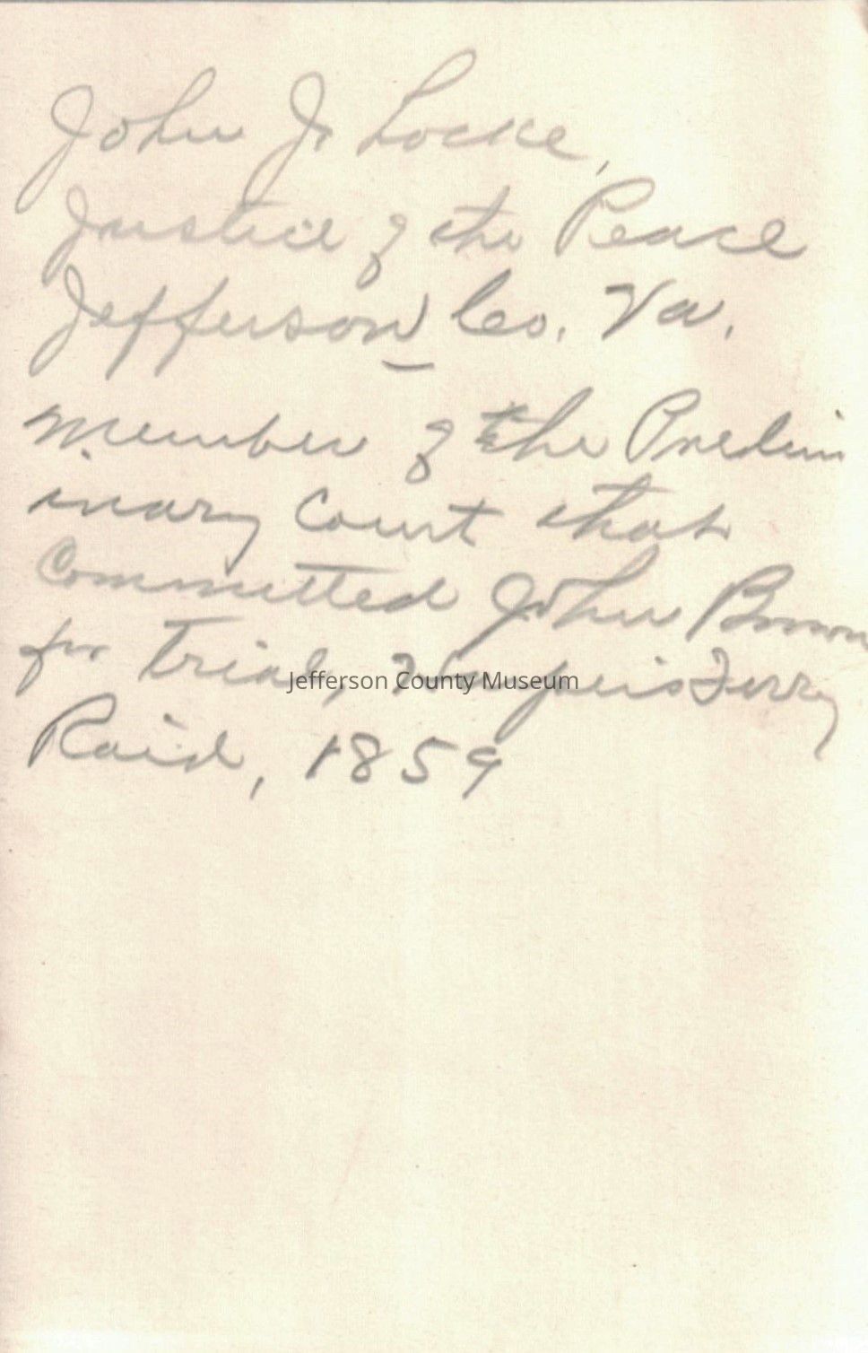 John J. Locke, Justice of the Peace, Jefferson Co. Va., member of the preliminary court that committed John Brown for trial, Harpers Ferry raid, 1859.Acquisition