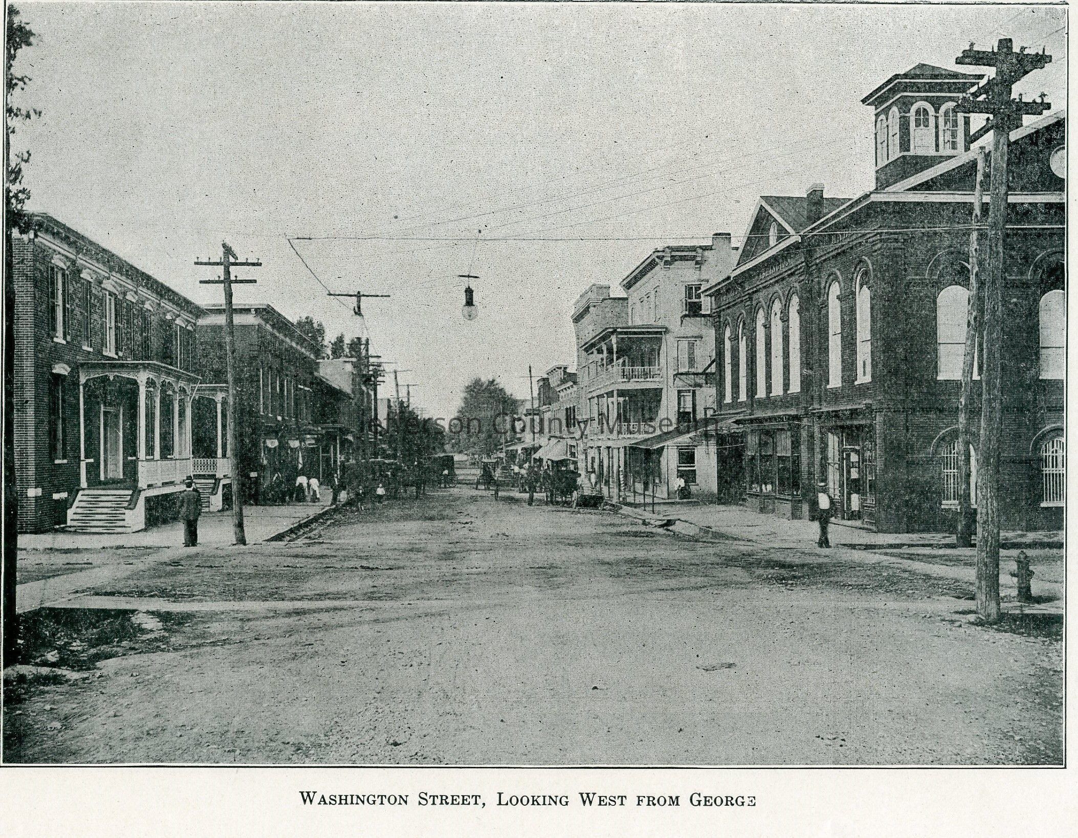 Booklet, 9" x 7", "Souvenir of Charles Town, W.Va" with red cover, c. 1900. Thirteen pages with 26 photographs taken in and near Charles Town. One page introduction with history of Charles Town. Printed at "Virginia Free Press, Charles Town, W.Va. George E. Wysong, Printer." Margaret H. Gibson written on inside front cover.