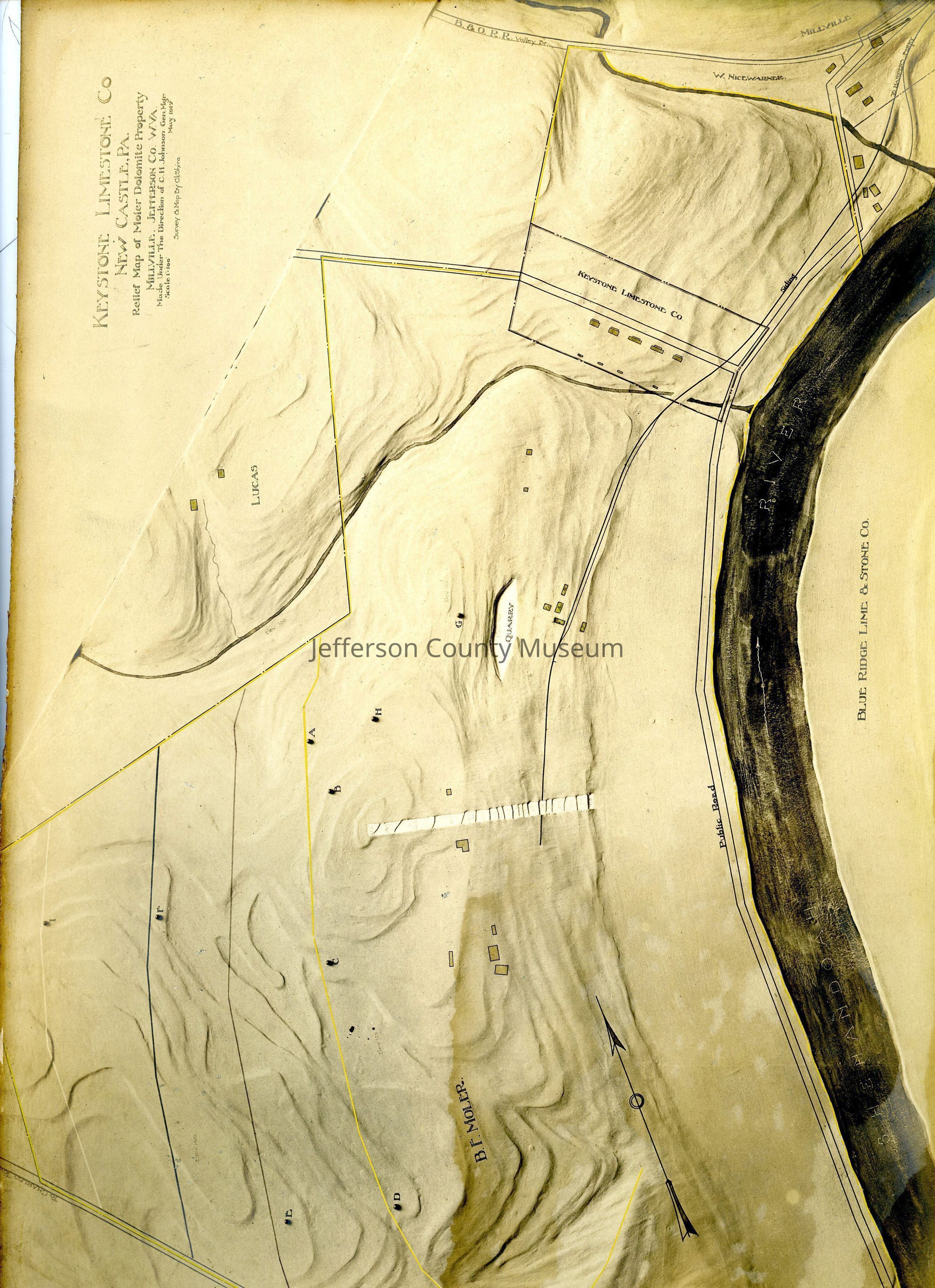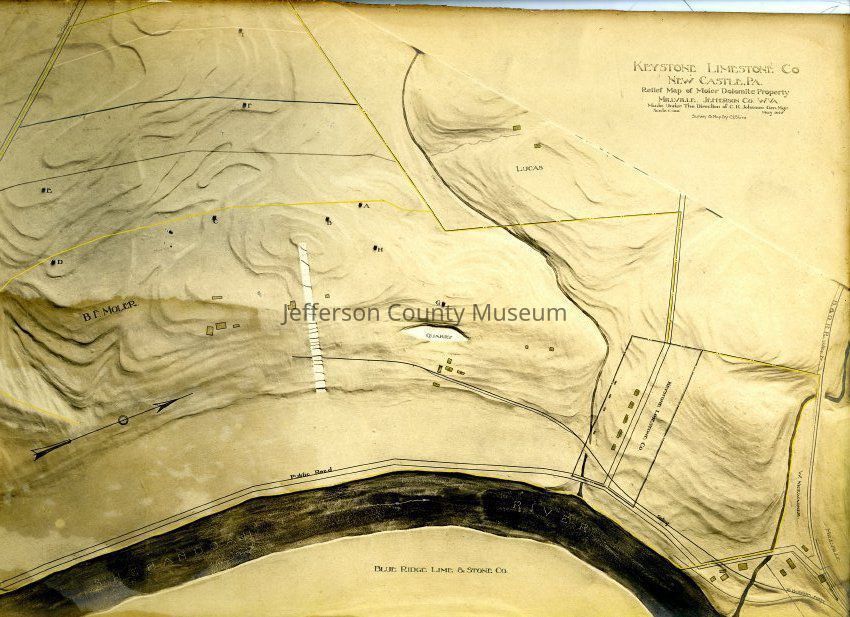 Relief map of Moler Dolomite Property, Millville, Jefferson County, West Virginia, parent company: Keystone Limestone Company, New Castle, PA