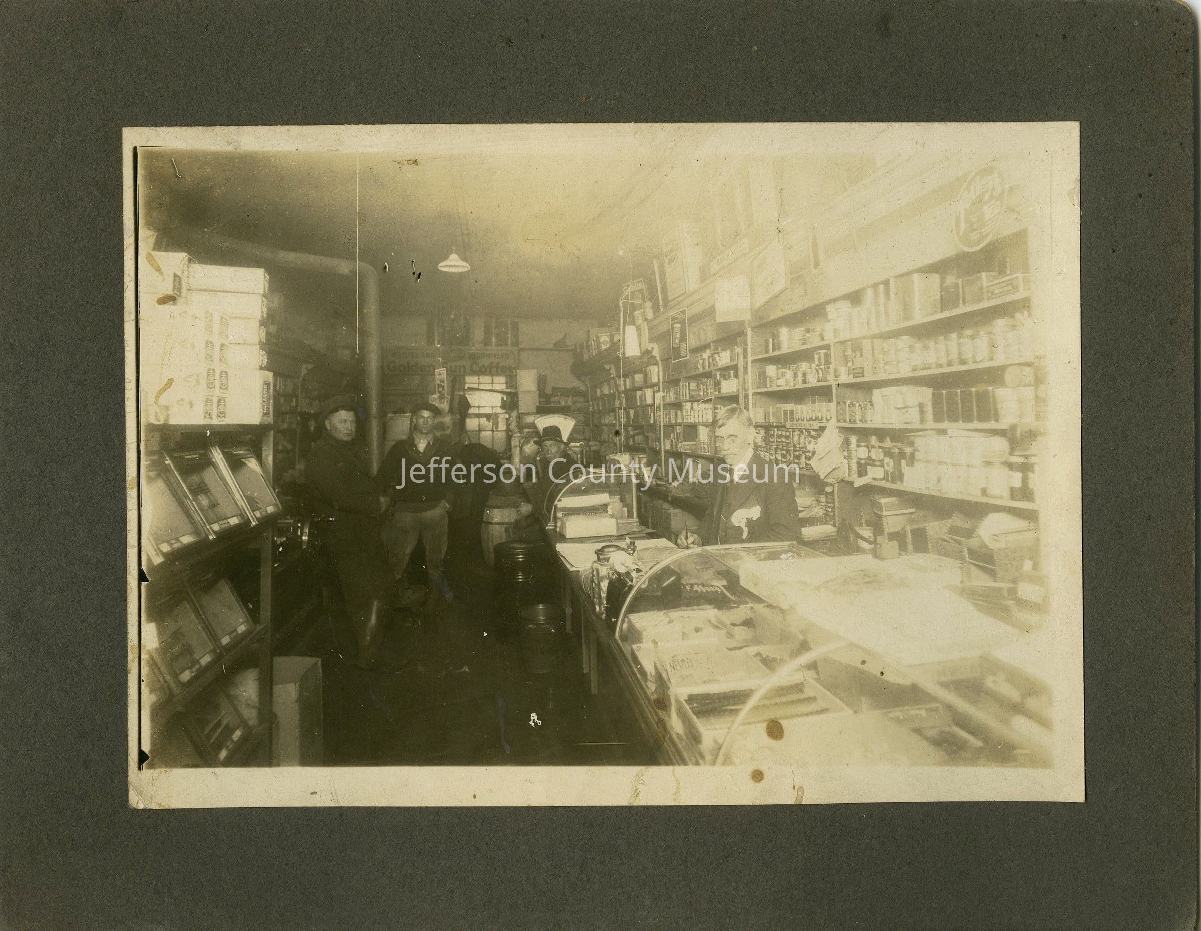 Cecil Eby, Sr in his store on Washington Street, written on the back of the photograph in cursive.Acquisition