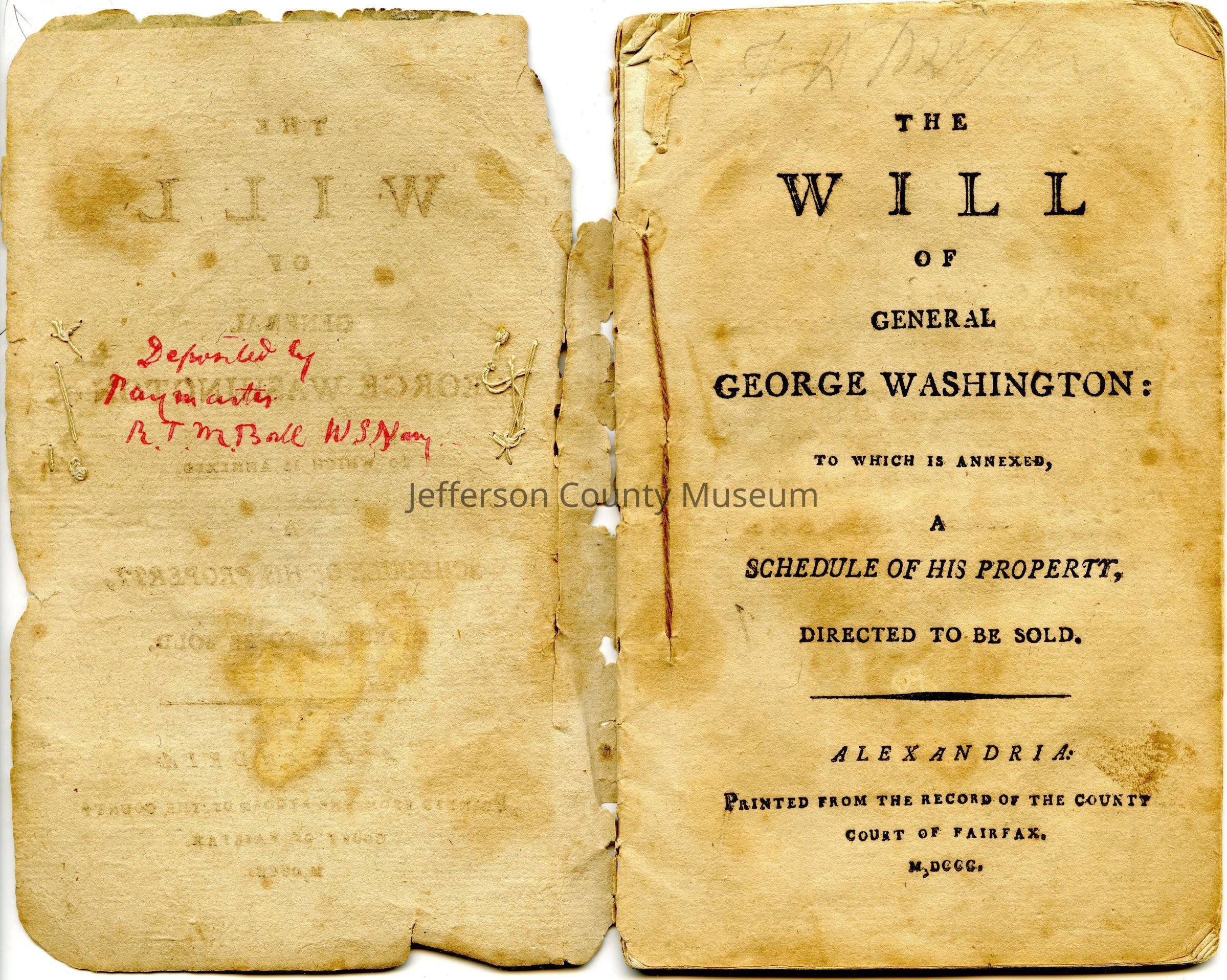 A copy of George Washington's will from the first printing in Alexandria, Va., January 23, 1800.