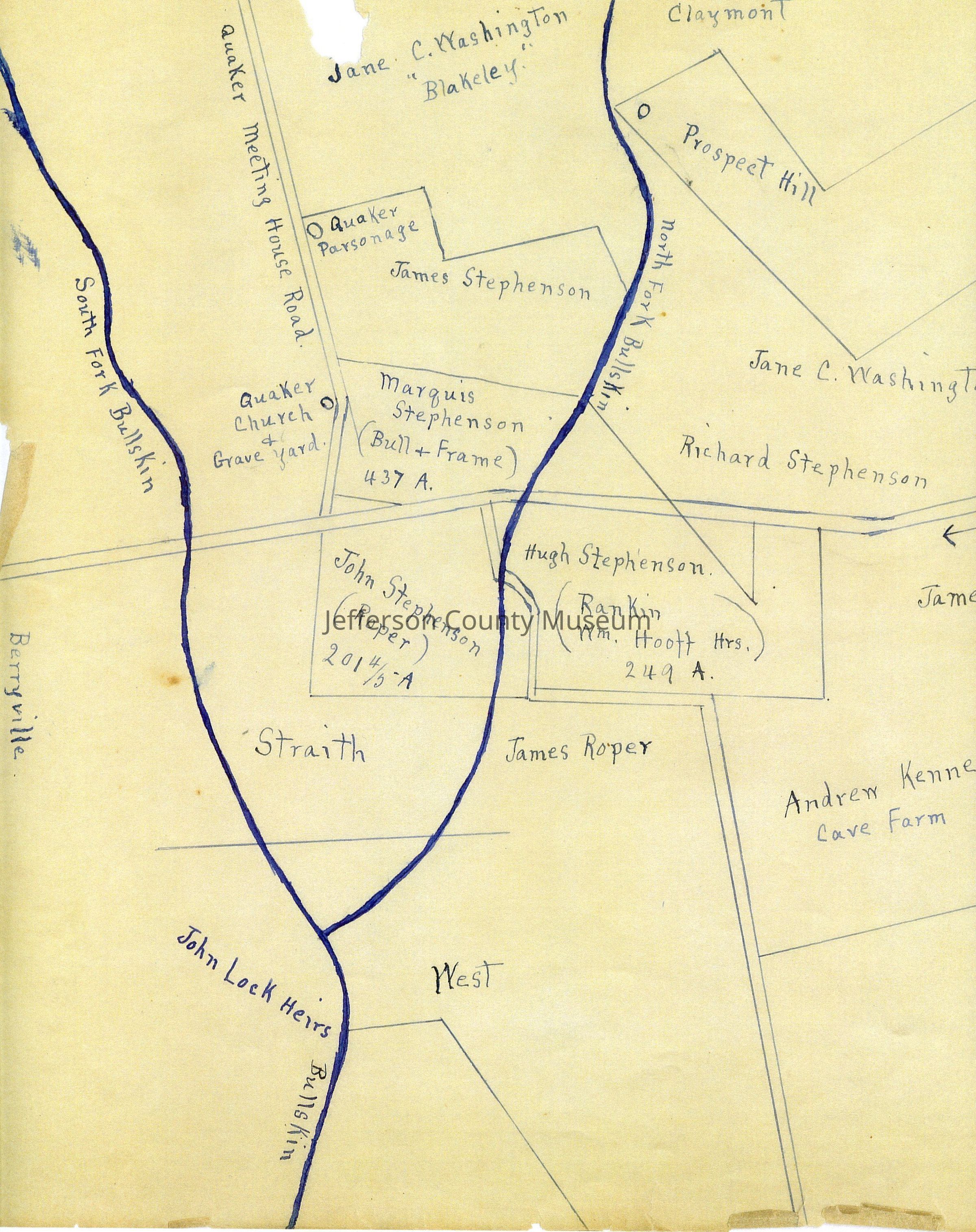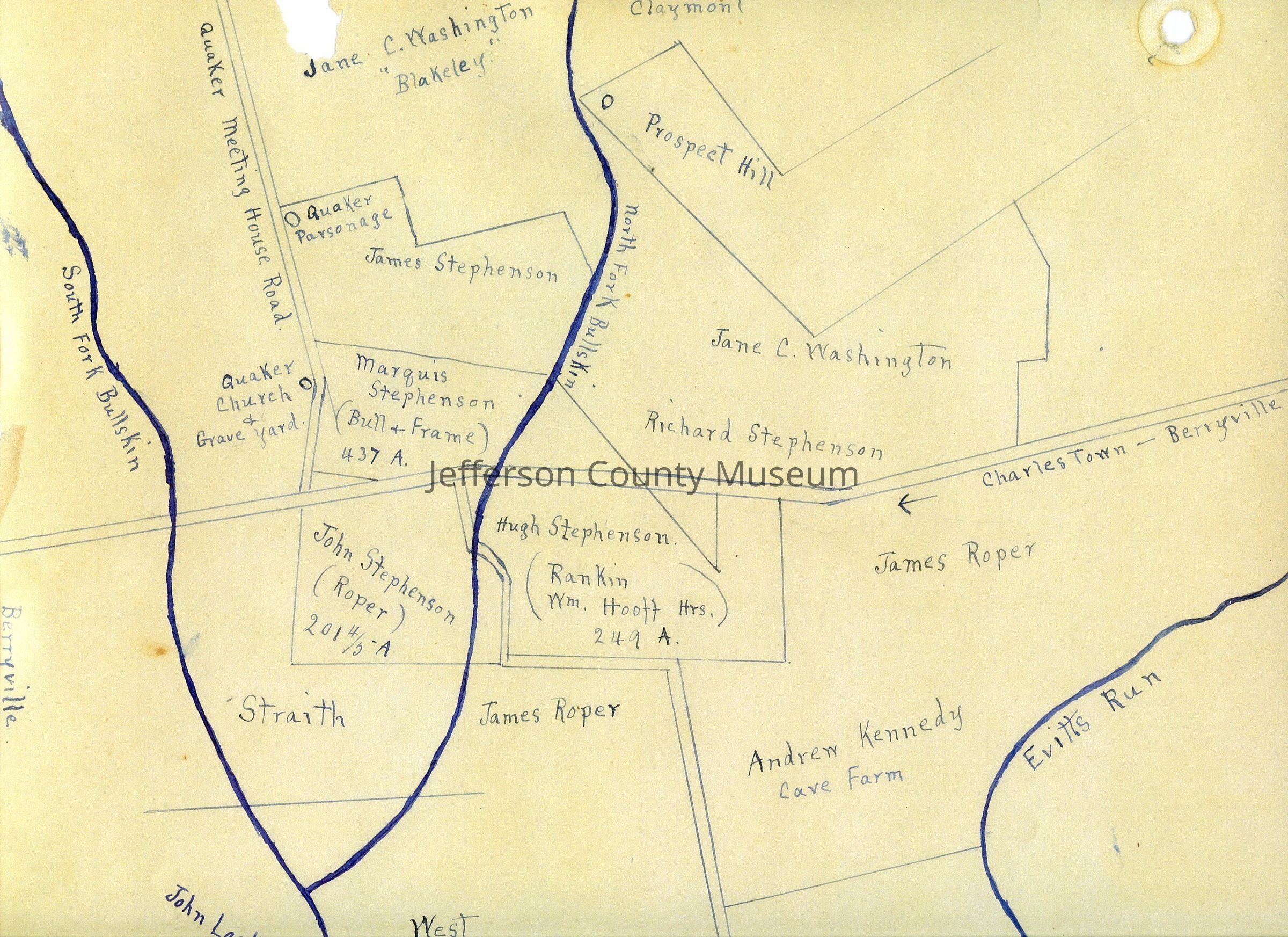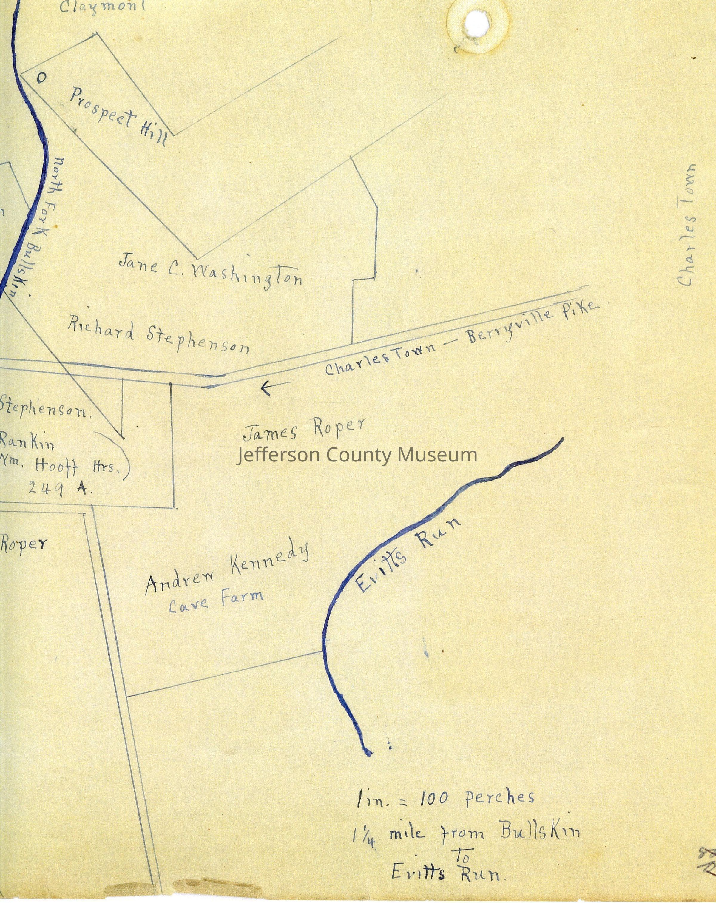 Hand-drawn map of the Charles Town-Berryville Pike and Bullskin-Evitts Run area