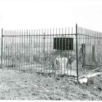 IMG3699-3: Fence and boundary stone at Elmwood engraved with 1782 date of land grant from Lord Fairfax to Edward Lucas