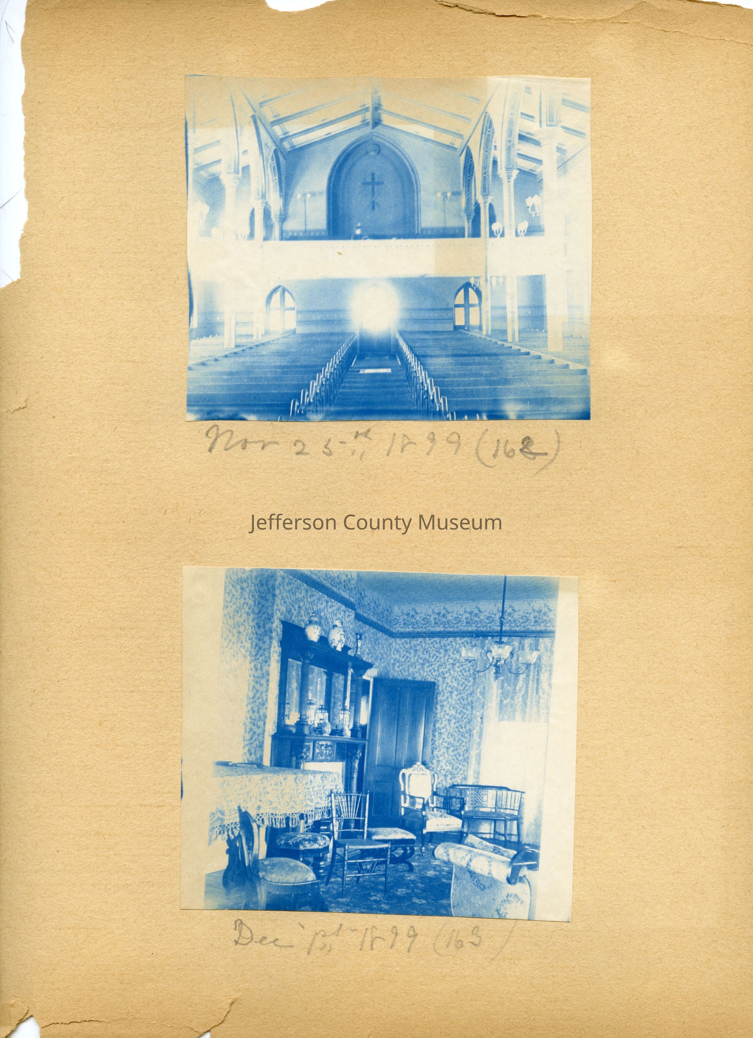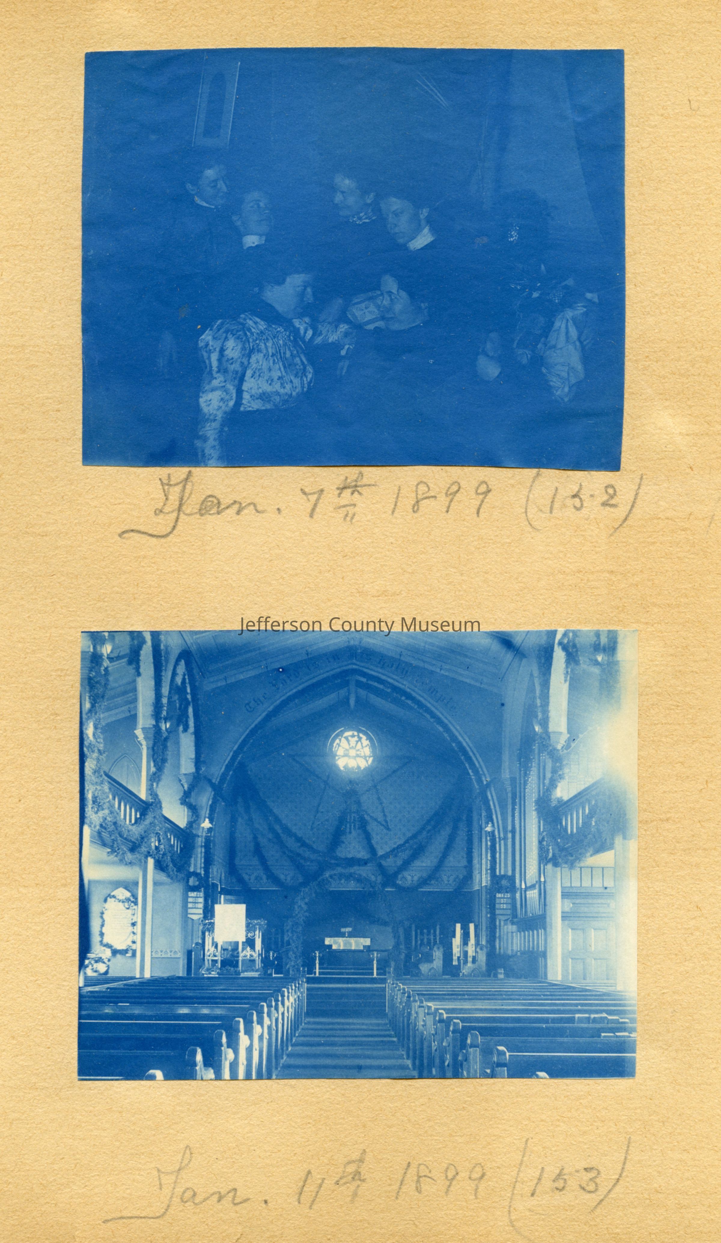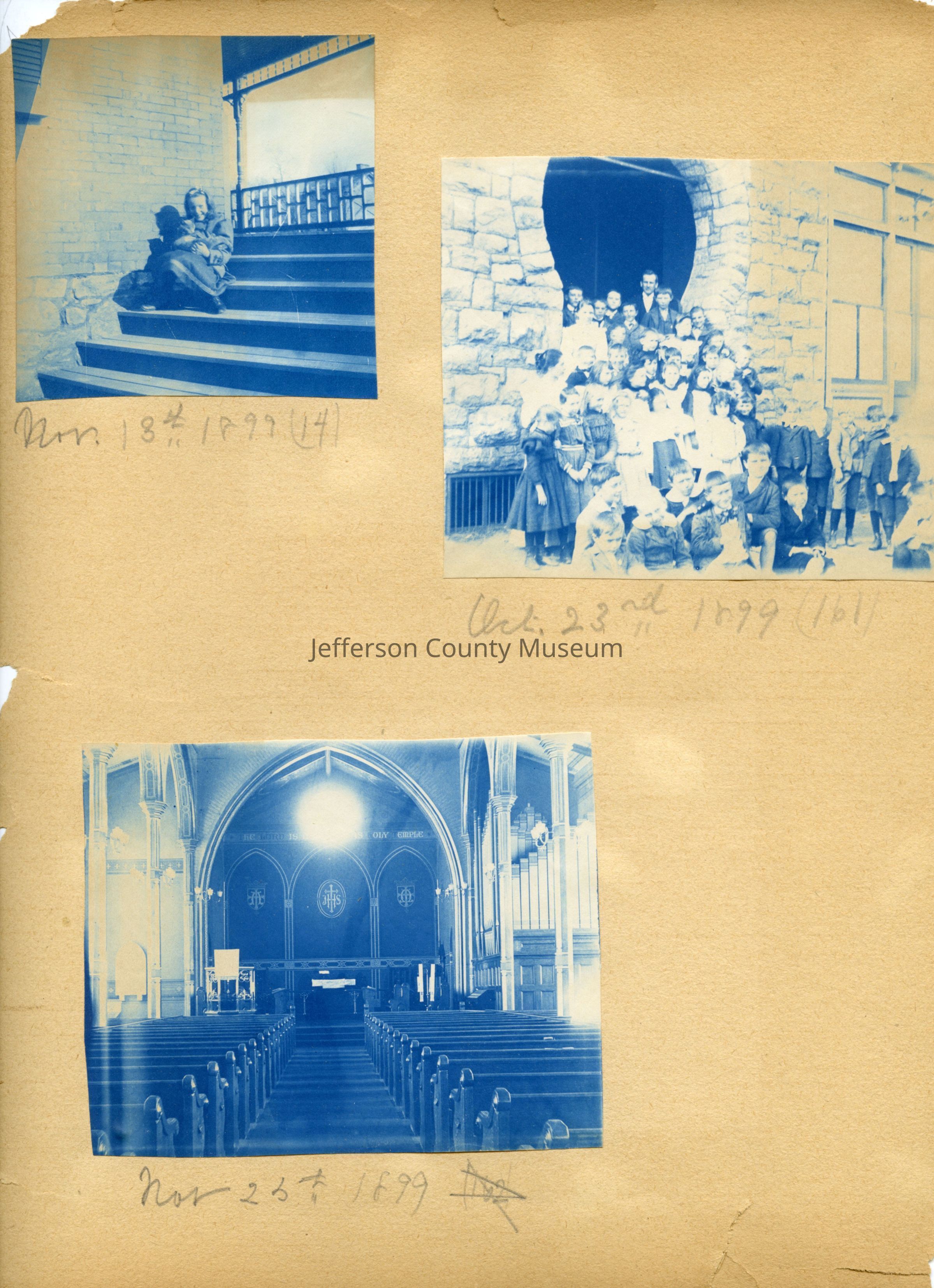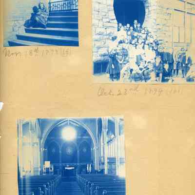 Album 2) Photos dated May 25, 1898, to Sep 5, 1900 (blue & white photos--cyanotypes) (pages are loose and not numbered, 5 photos scanned. Four photos of Zion Church dated November 25, November 30, December 1 and November 25, 1899, and one photo of Charles Town Graded School dated October 23, 1899)