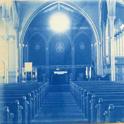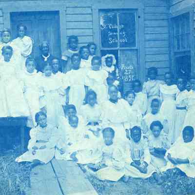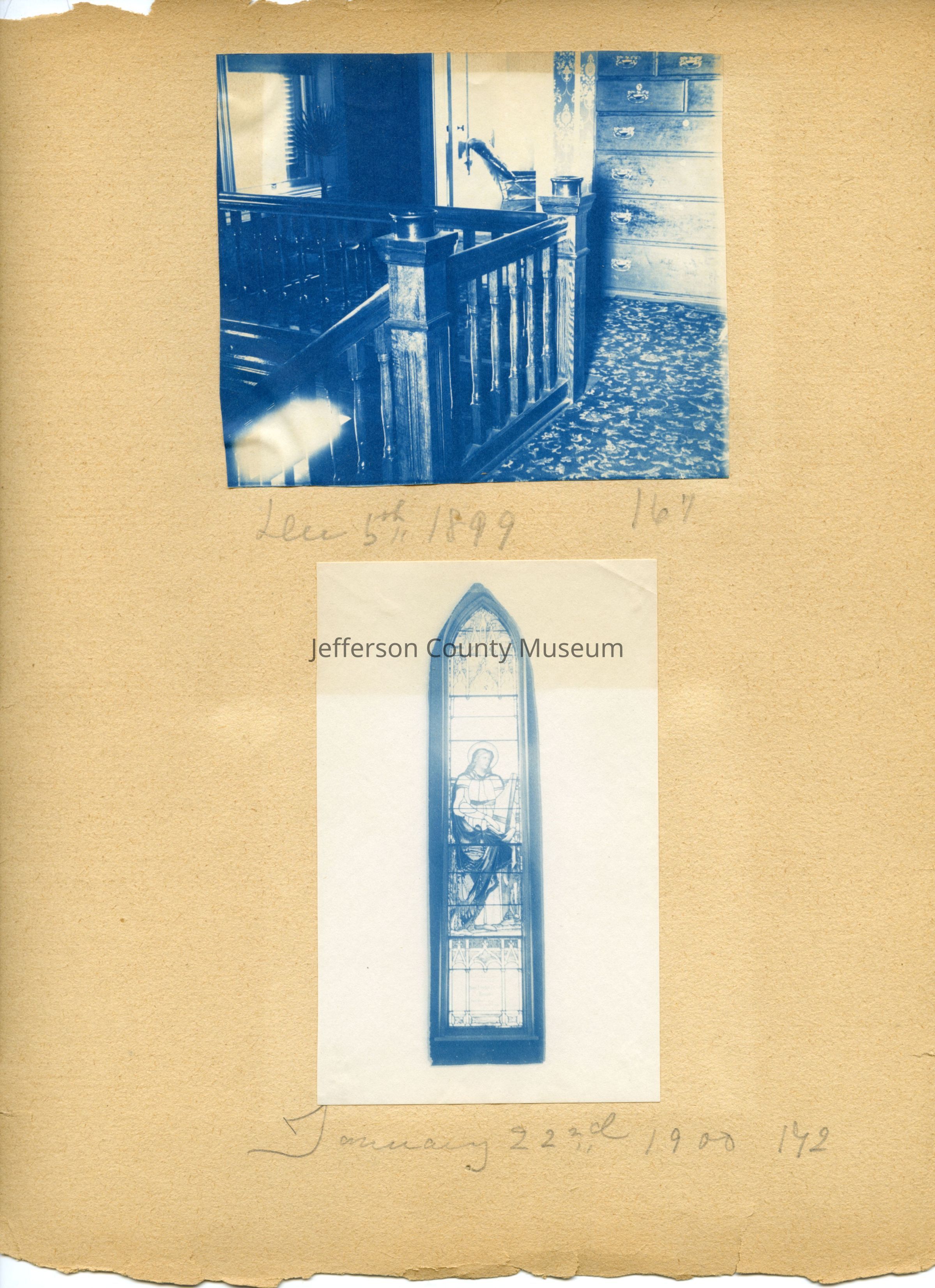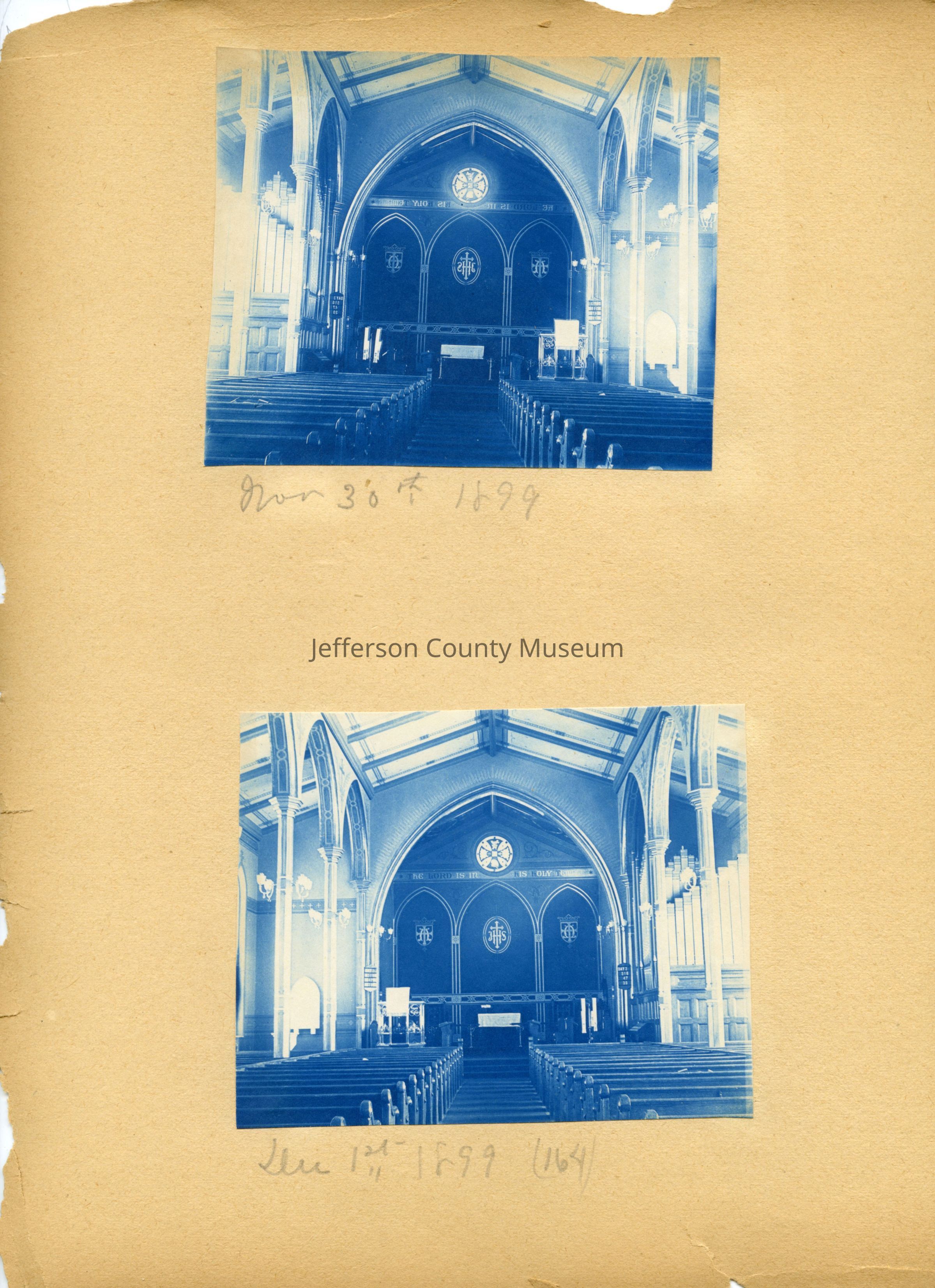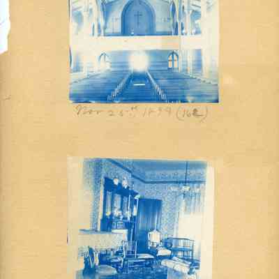 Album 2) Photos dated May 25, 1898, to Sep 5, 1900 (blue & white photos--cyanotypes) (pages are loose and not numbered, 5 photos scanned. Four photos of Zion Church dated November 25, November 30, December 1 and November 25, 1899, and one photo of Charles Town Graded School dated October 23, 1899)